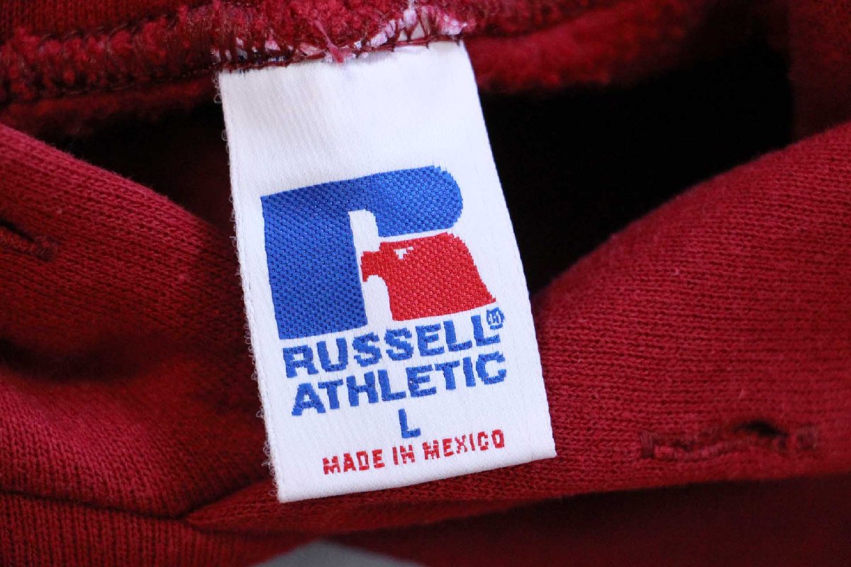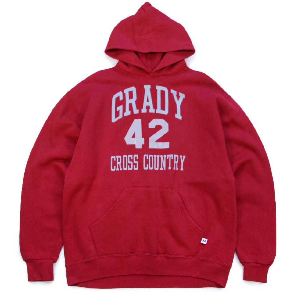 90s メキシコ製 RUSSELLラッセル GRADY 42 CROSS COUNTRY スウェットパーカー 濃赤 L★フーディー