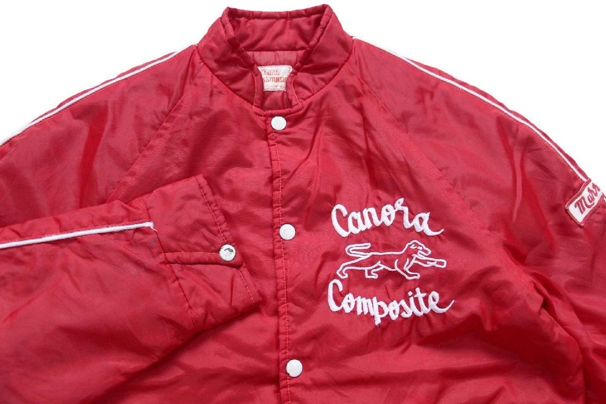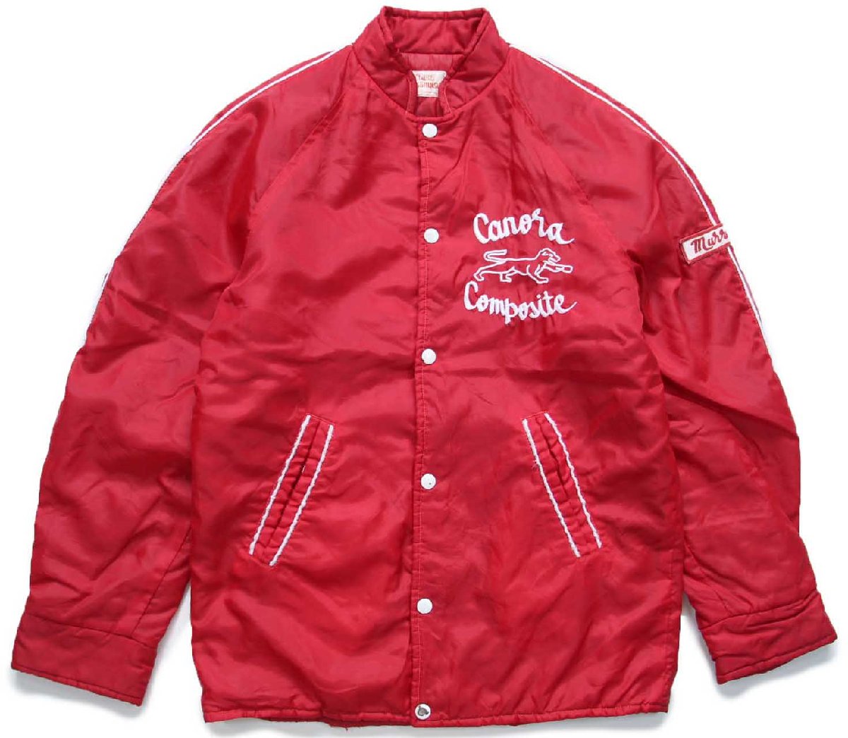 80s Canora Composite 刺繍&パッチ付き スタンドカラー キルティングライナー ナイロンジャケット 赤