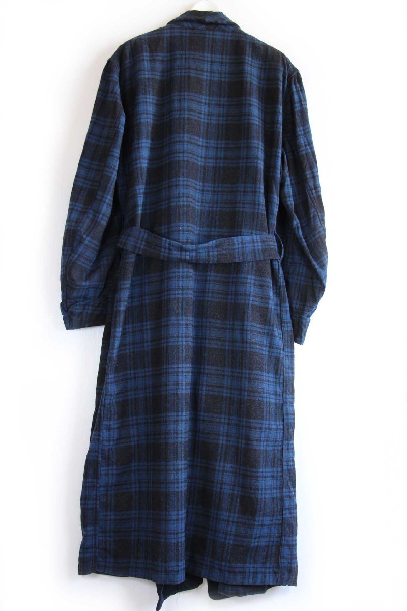 50s PENDLETONペンドルトン チェック ペンキ飛び ショールカラー ウールガウン 青×黒 L