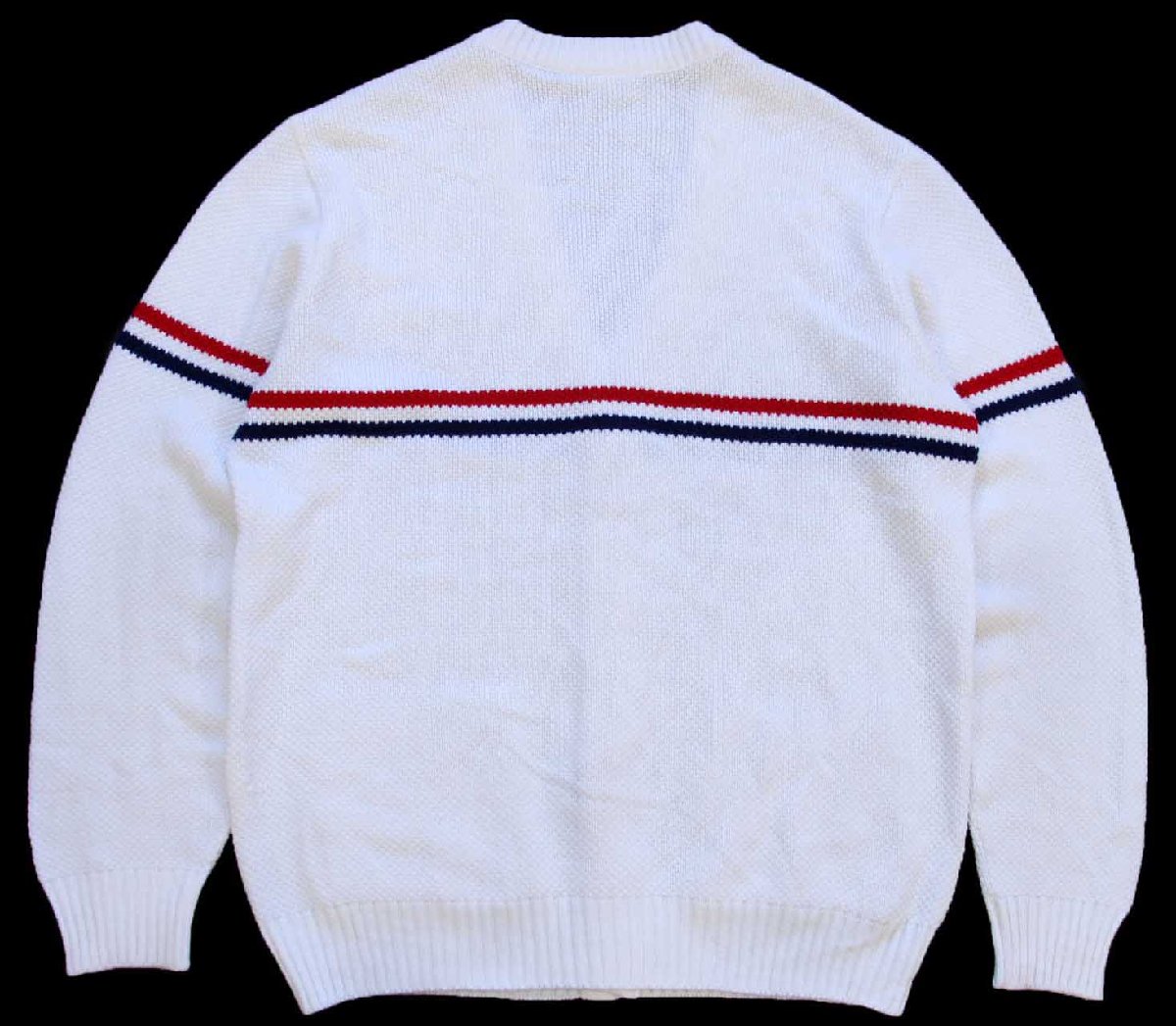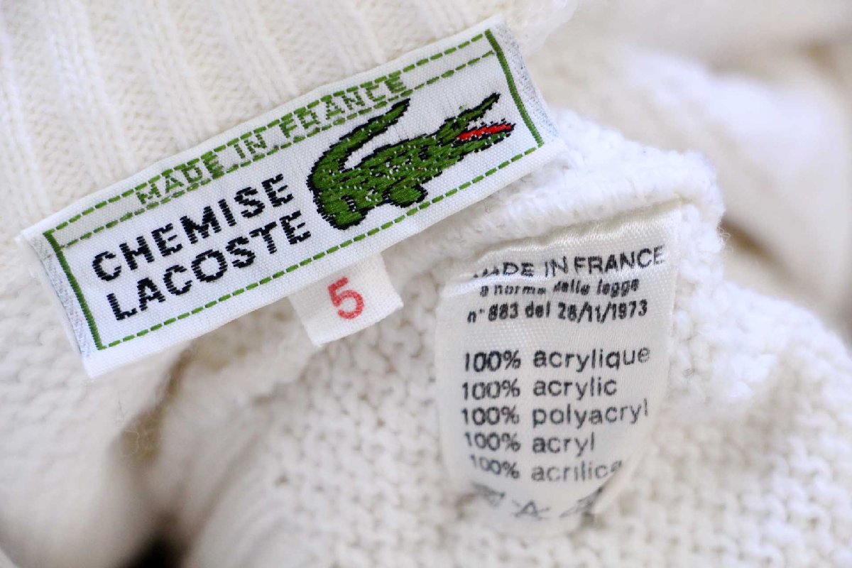70s フランス製 CHEMISE LACOSTE ラコステ ライン パチポケ アクリルニット カーディガン 白 5