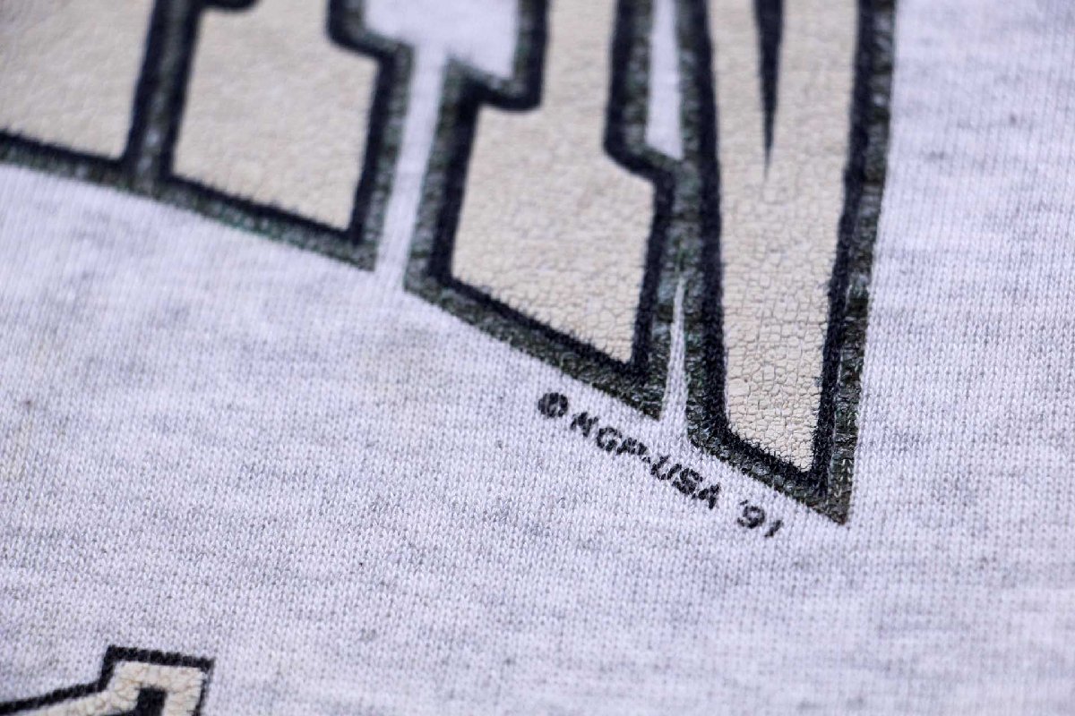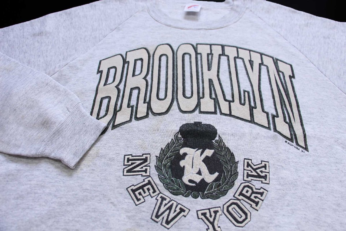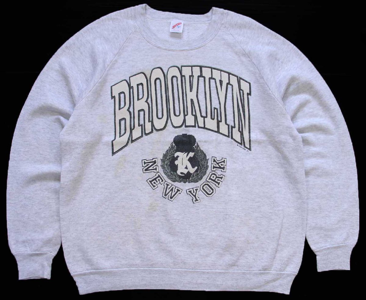 90s USA製 BROOKLYN NEW YORK ひび割れプリント スウェット 杢ライトグレー XL★RUSSELLラッセル