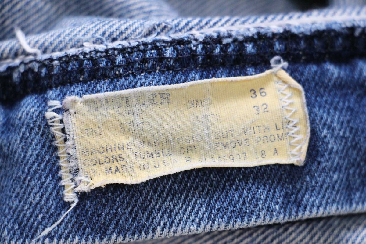 コンディション:着用感があり、所々に多少の薄汚れと細かい擦れ、左裾に擦り切れがあります。目立つダメージや酷い汚れはなく、古着慣れされている方なら問題なく着用いただける程度です。