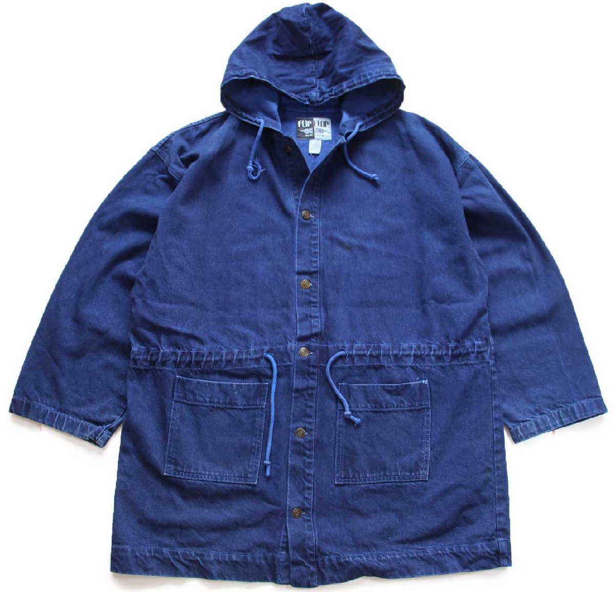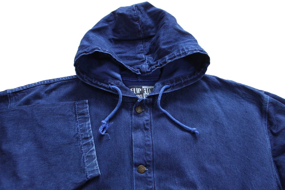 90s USA製 FLIP FLOP 後染め カラーデニムパーカー 紺 XL