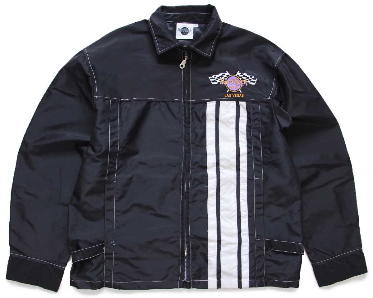 90s Hard Rock HOTEL ハードロック ホテル LAS VEGAS チェッカーフラッグ 刺繍 チンスト付き ナイロン レーシングジャケット 黒 S