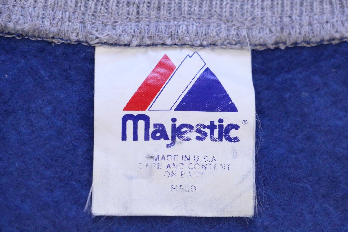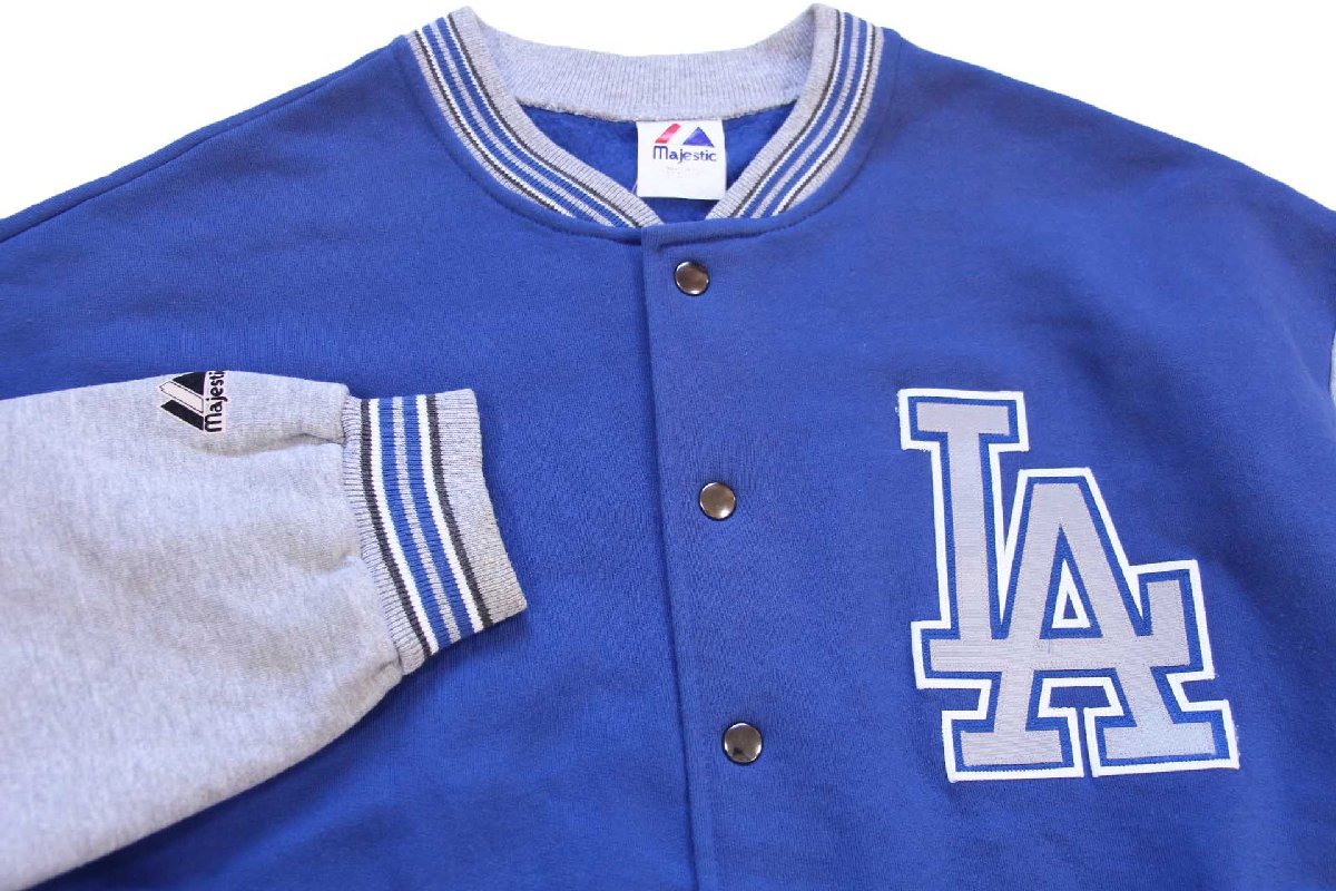 90s USA製 Majestic MLB Los Angeles Dodgers パッチ付き ツートン 切り替え スウェット スタジャン 青×杢グレー XL★ジャケット