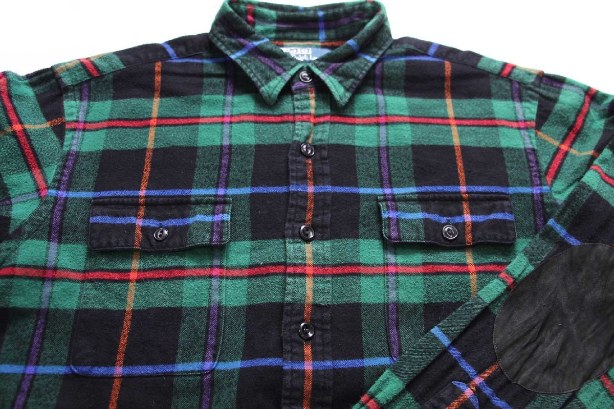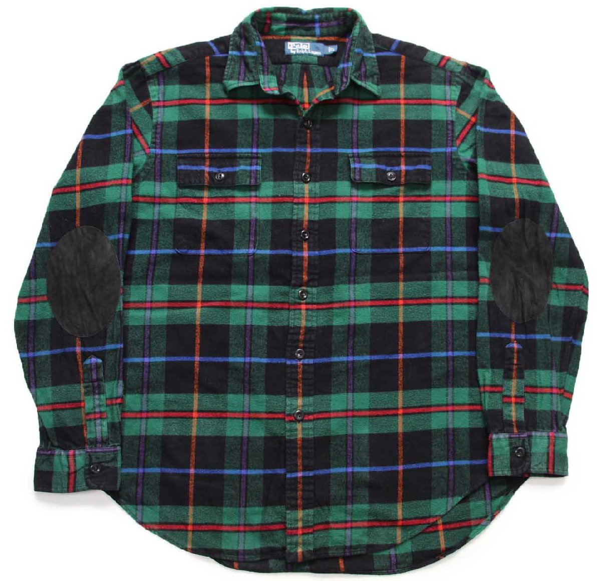 00s ポロ ラルフローレン チェック エルボーパッチ付き コットン フランネルシャツ L