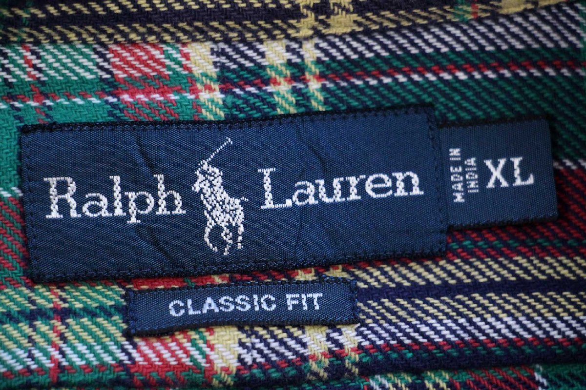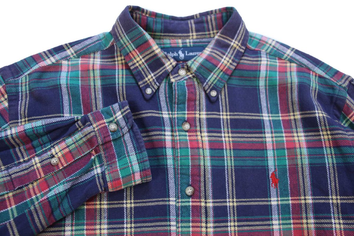 00s ラルフローレン CLASSIC FIT マドラスチェック ボタンダウン コットン フランネルシャツ XL★インド綿