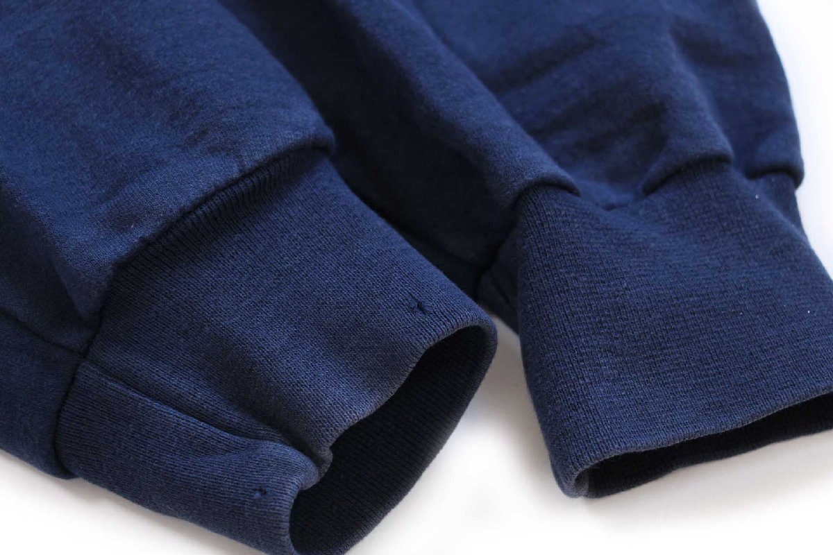 コンディション:着用感があり、全体的に多少の色落ち、フードハトメ付近に細かい変色、フードの片側紐先にほつれ、背中下部に僅かな薄汚れ、右袖リブに2つの細かい小穴があります。目立つダメージや酷い汚れはなく、生地もしっかりしていて、古着慣れされている方なら問題なく着用いただける程度です。