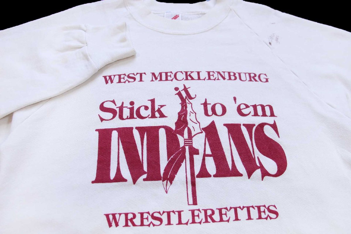 80s USA製 WEST MECKLENBURG INDIANS WRESTLERETTES 矢じり ペンキ飛び スウェット 白 L★RUSSELLラッセル