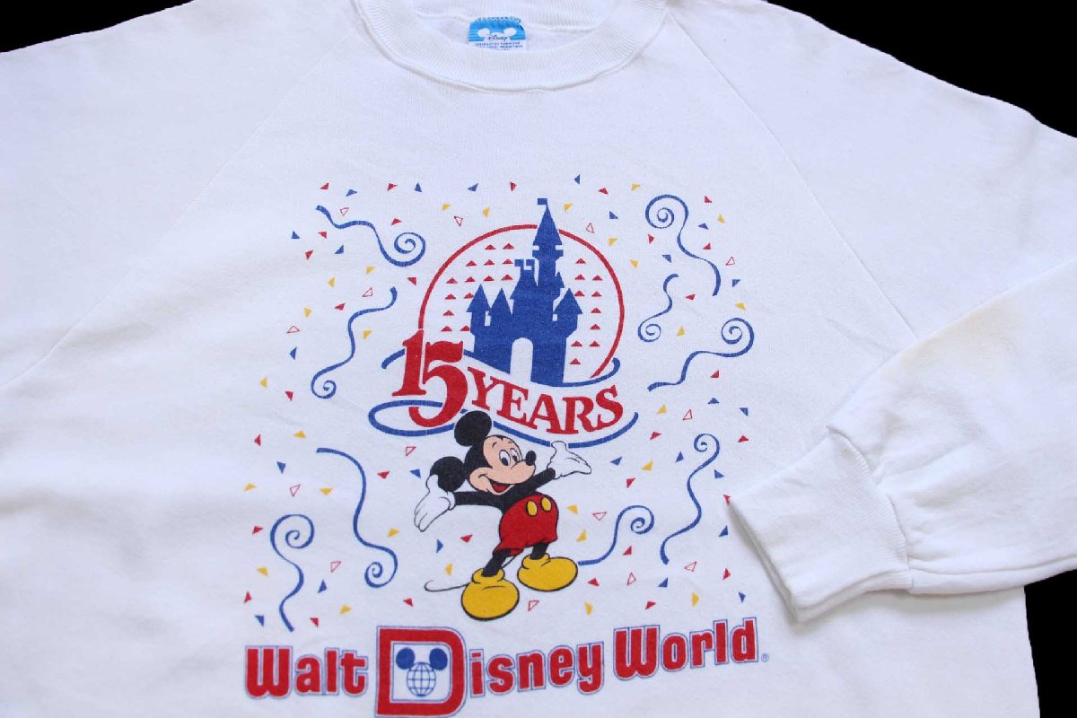 80s USA製 Disneyディズニー 15YEARS Walt Disney World ミッキー マウス スウェット 白 L★A
