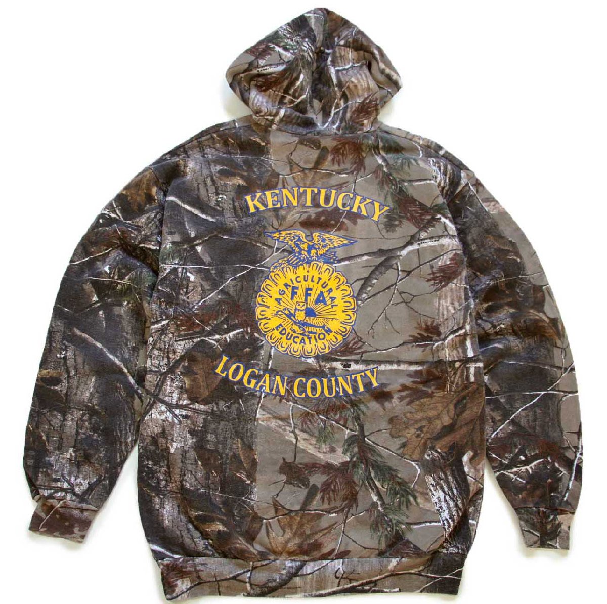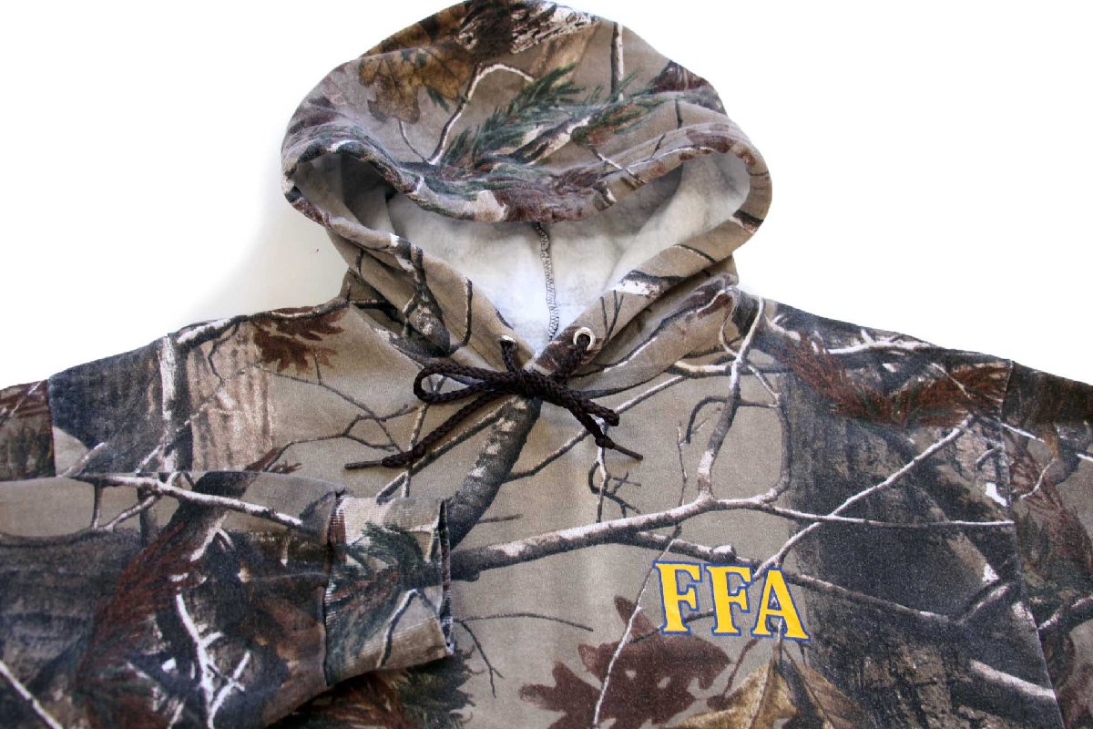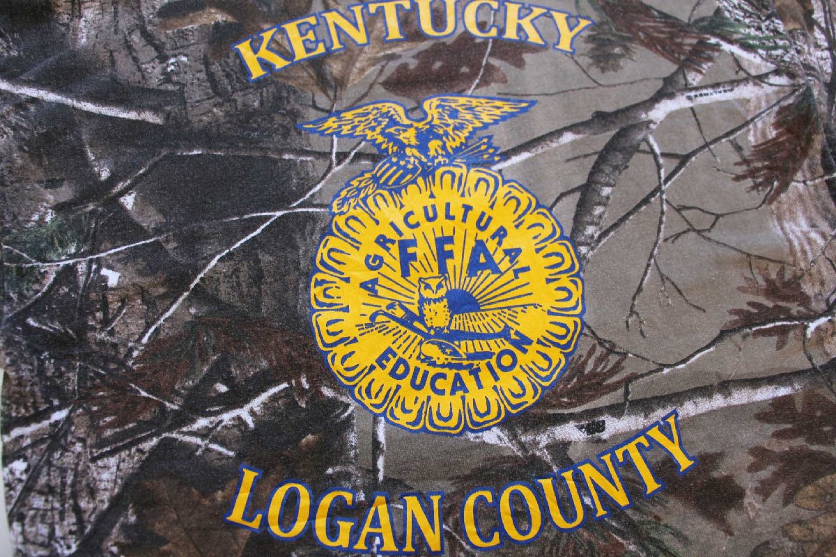 RUSSELL OUTDOORS ラッセル FFA KENTUCKY LOGAN COUNTY ロゴ 両面プリント リアルツリーカモ スウェットパーカー L★フーディー