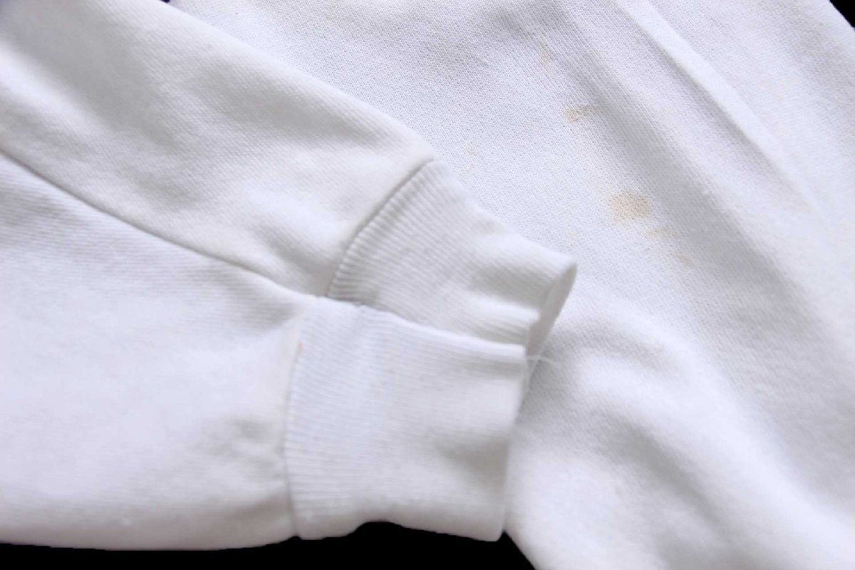 コンディション:着用感があり、所々に若干のうっすら汚れ、左袖に少しの薄汚れ、フロント右下部に浅い擦れ、フロント右裾リブにピンホールがあります。目立つダメージや酷い汚れはなく、古着慣れされている方なら問題なく着用いただける程度です。