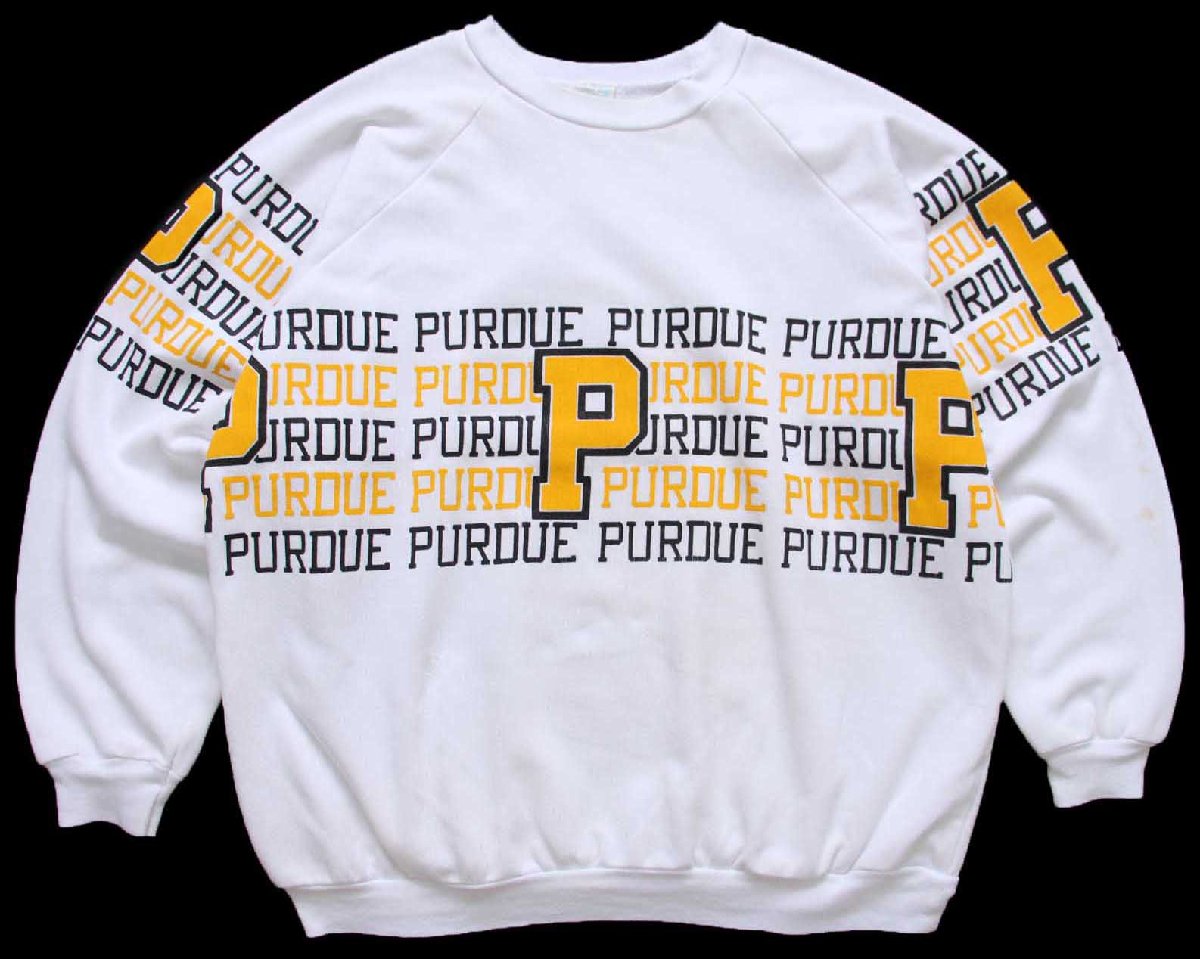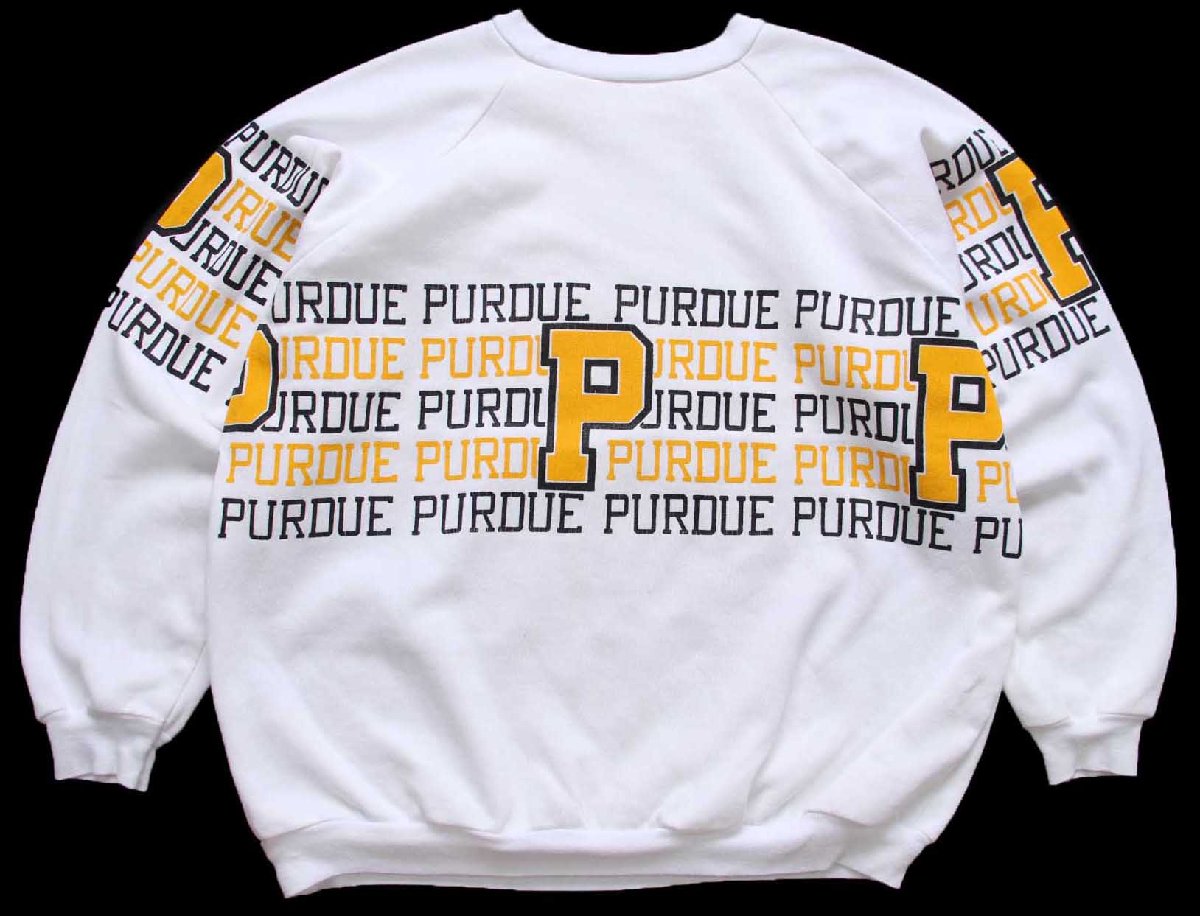 80s USA製 PURDUE ロゴ 両面&袖プリント スウェット 白 XL