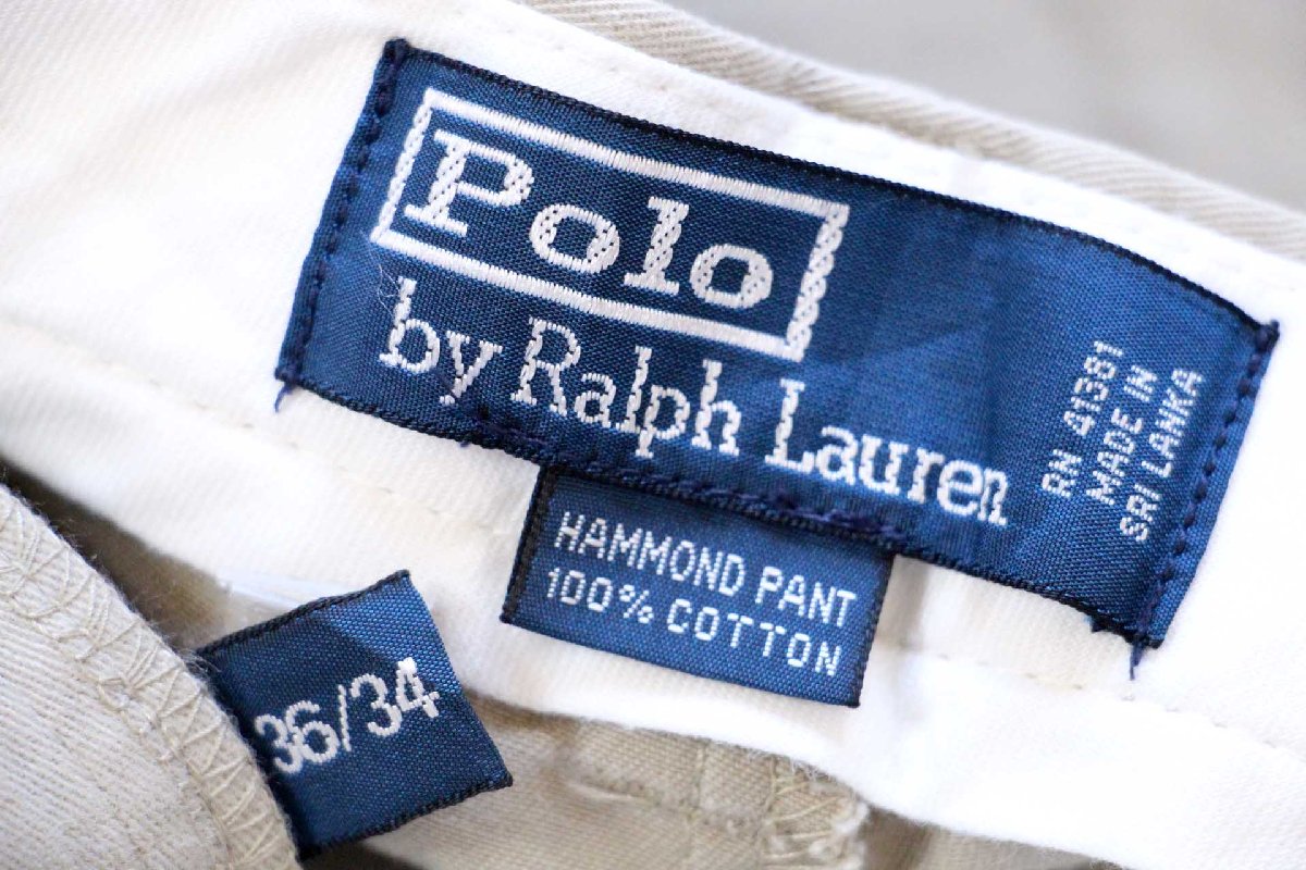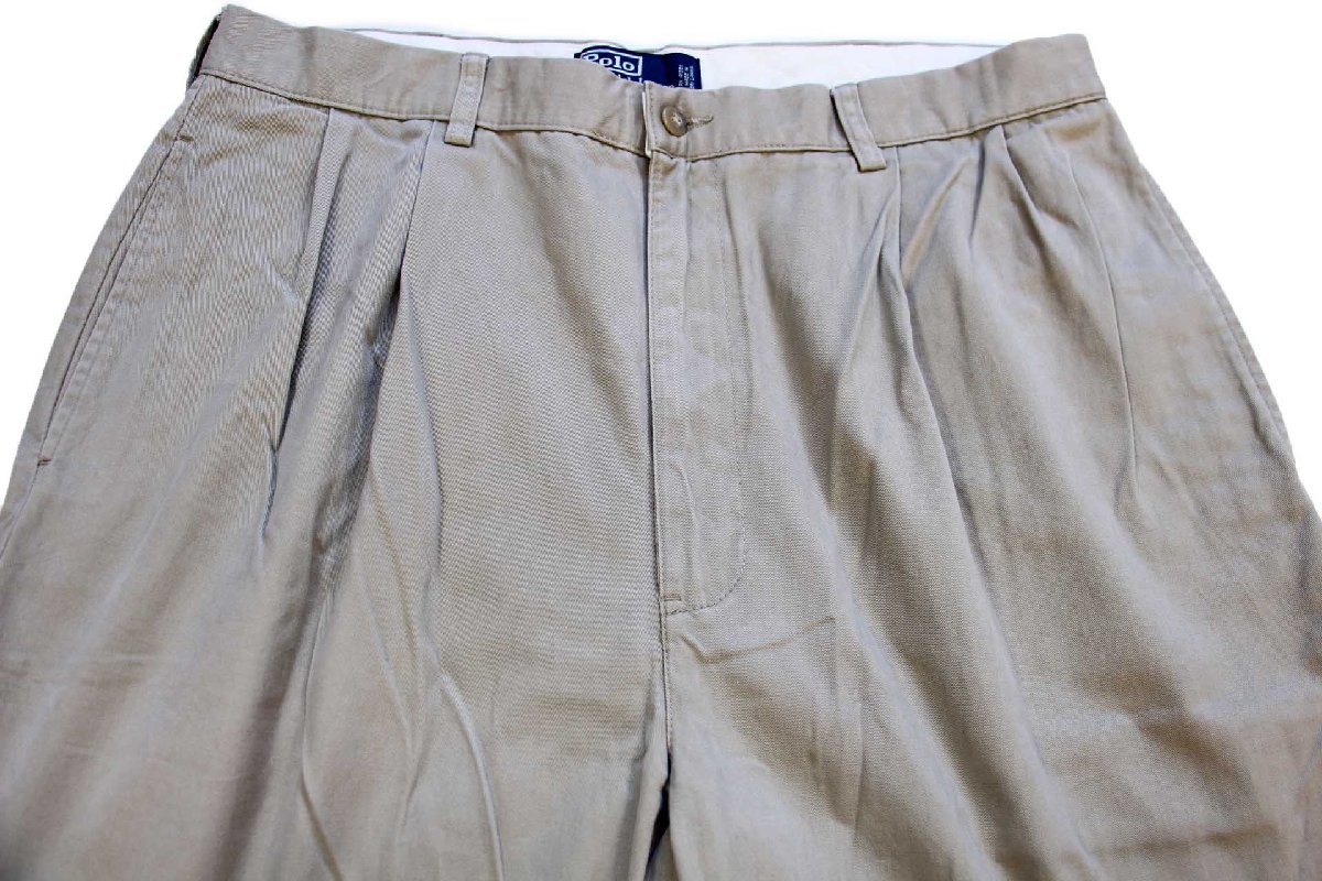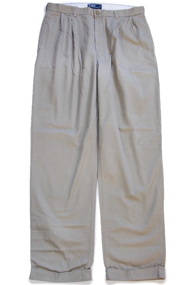 00s ポロ ラルフローレン HAMMOND PANT ツータック コットン チノパン グレーベージュ W36 L34★348