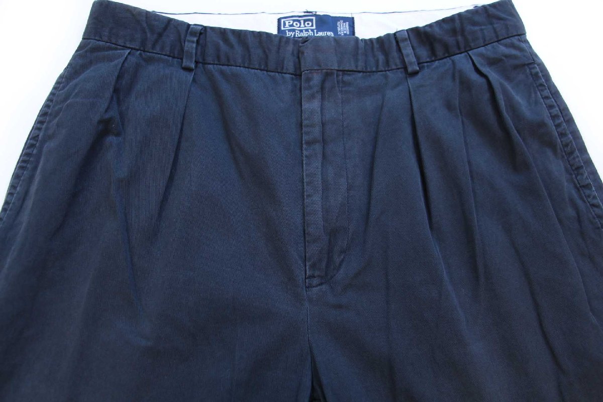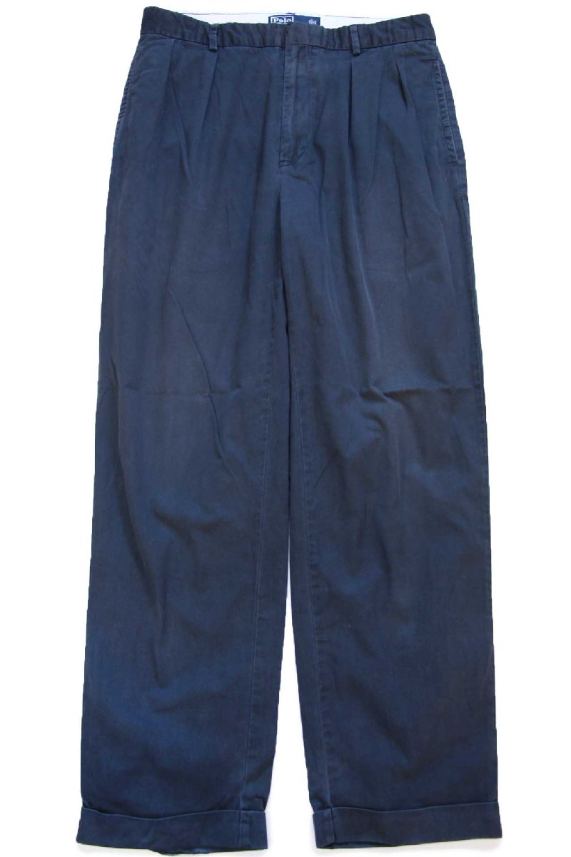 90s ポロ ラルフローレン ツータック スラックス コットンパンツ 紺 フェード W33 L30★347
