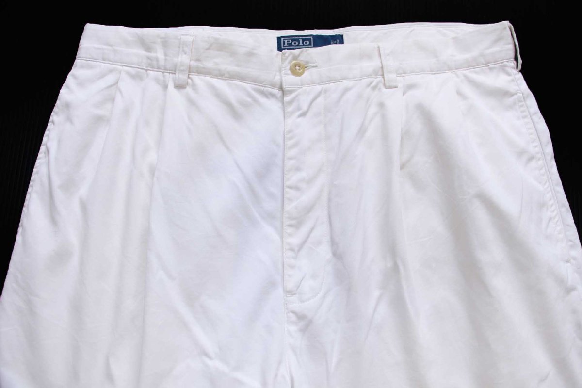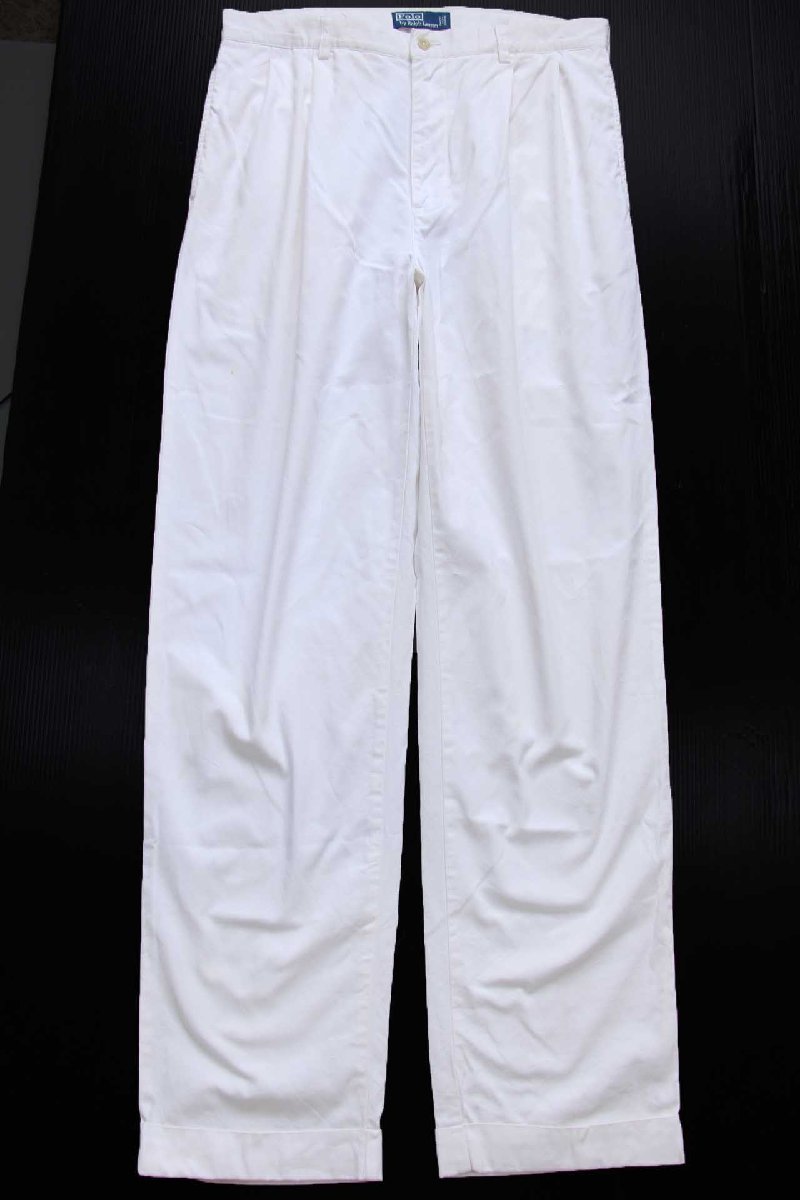 90s ポロ ラルフローレン ツータック コットンパンツ 白 W34 L34