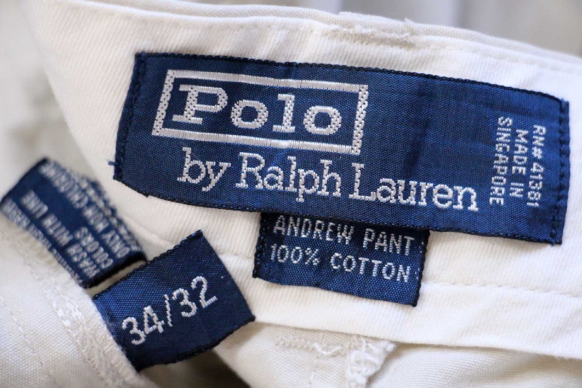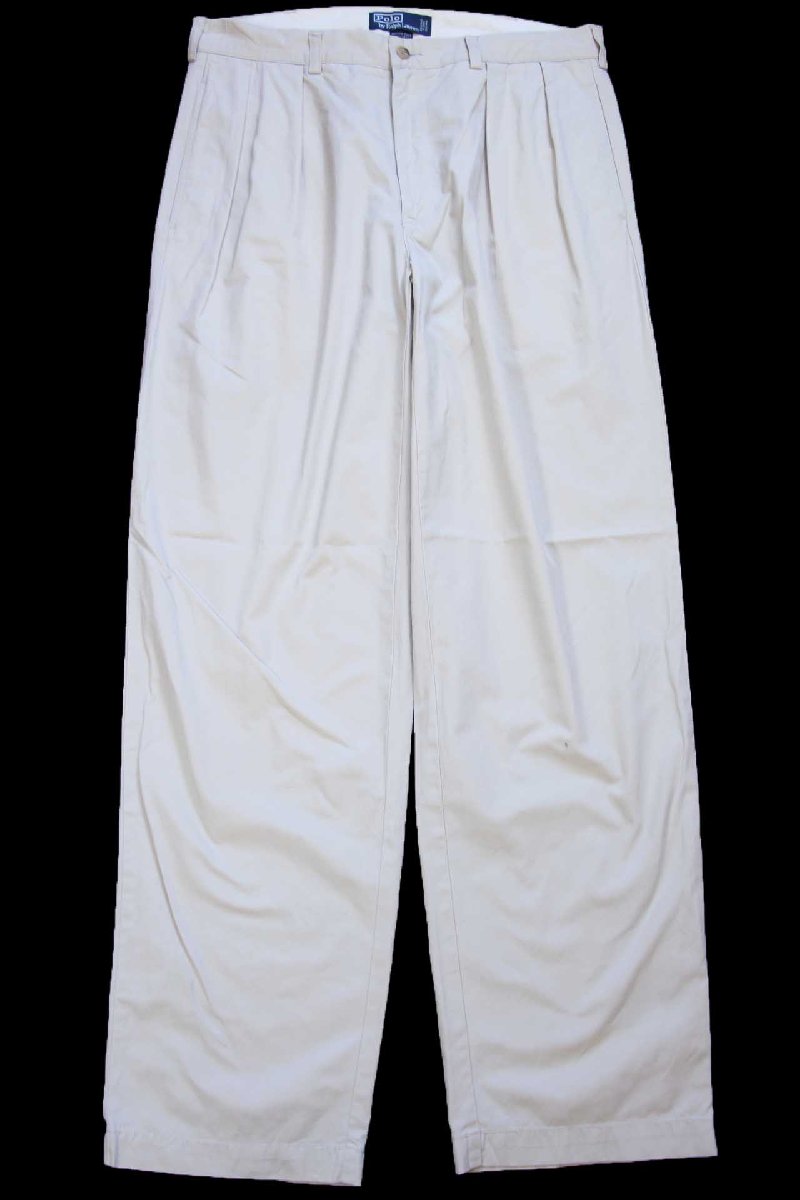 90s ポロ ラルフローレン ANDREW PANT ツータック コットンパンツ ライトベージュ W34 L32★351