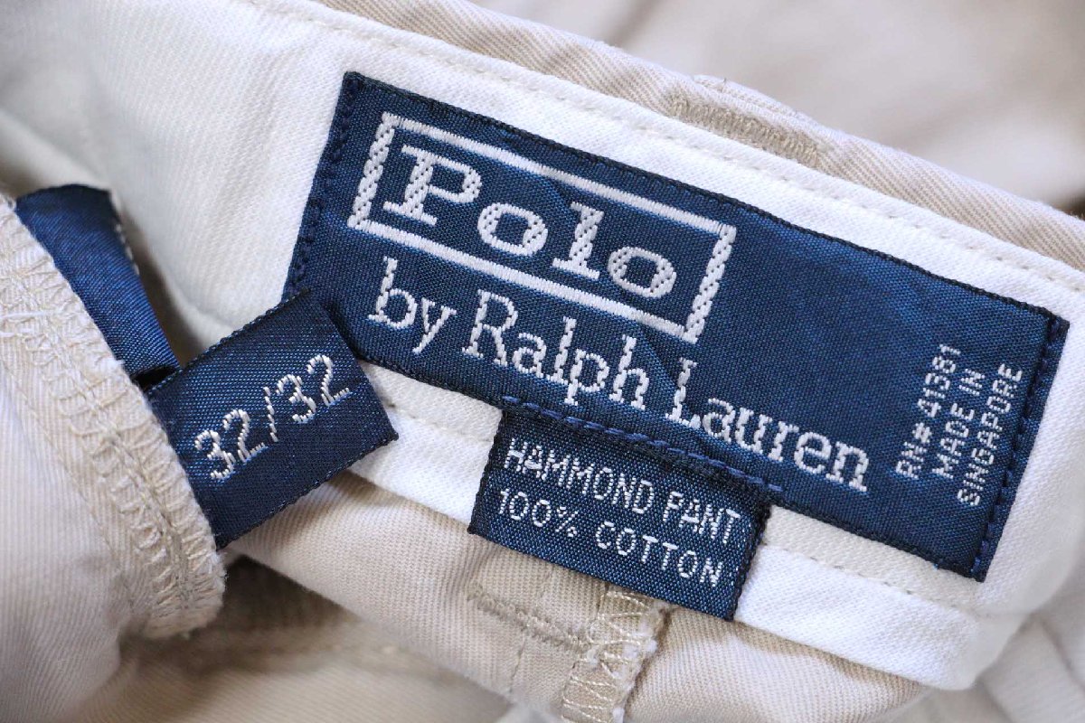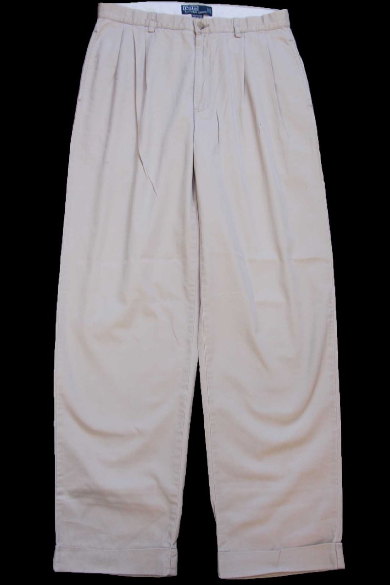 90s ポロ ラルフローレン HAMMOND PANT ツータック コットンパンツ カーキ W32 L32★350