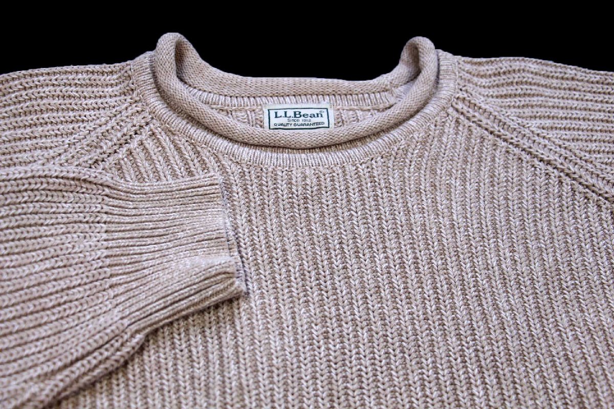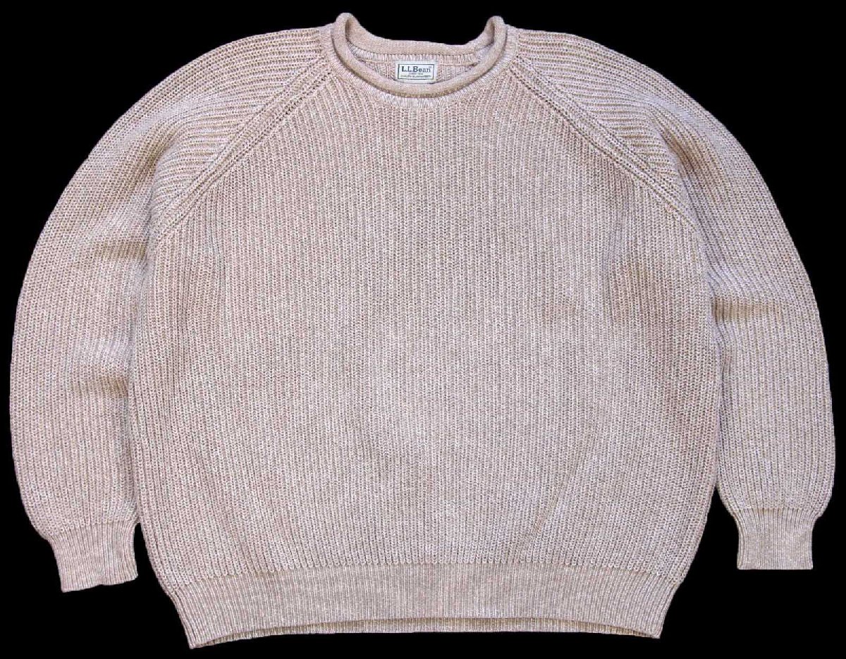 L.L.Bean 無地 ロールネック ローゲージ コットンニット セーター ブラウンベージュ×ナチュラル ミックス XL-R