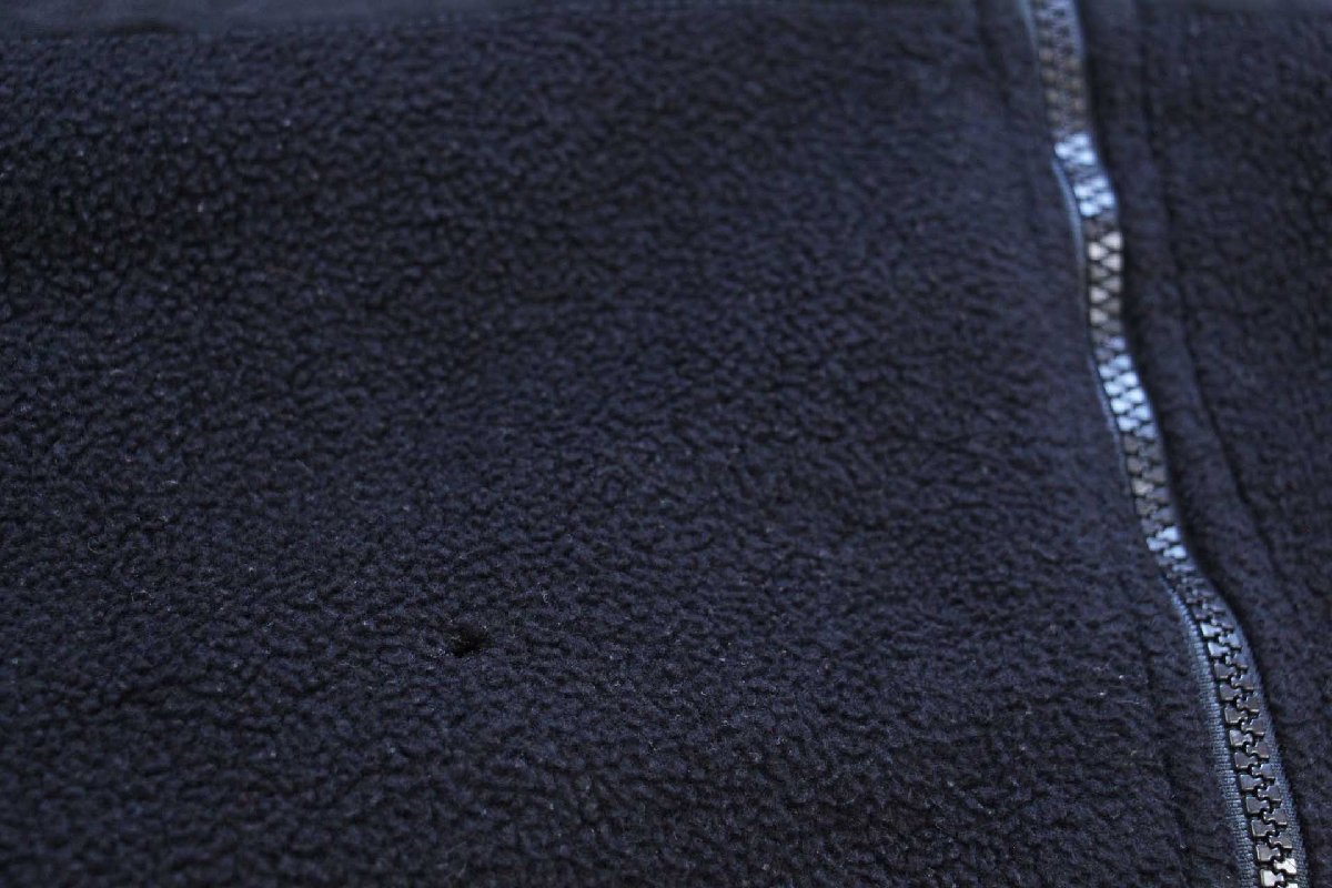 コンディション:着用感があり、フロント中央右に1つの細かい小穴、裏地下部に穴、腹部左ポケットのジップが交換されています。致命的なダメージや汚れはなく、古着慣れされている方なら問題なく着用いただける程度です。