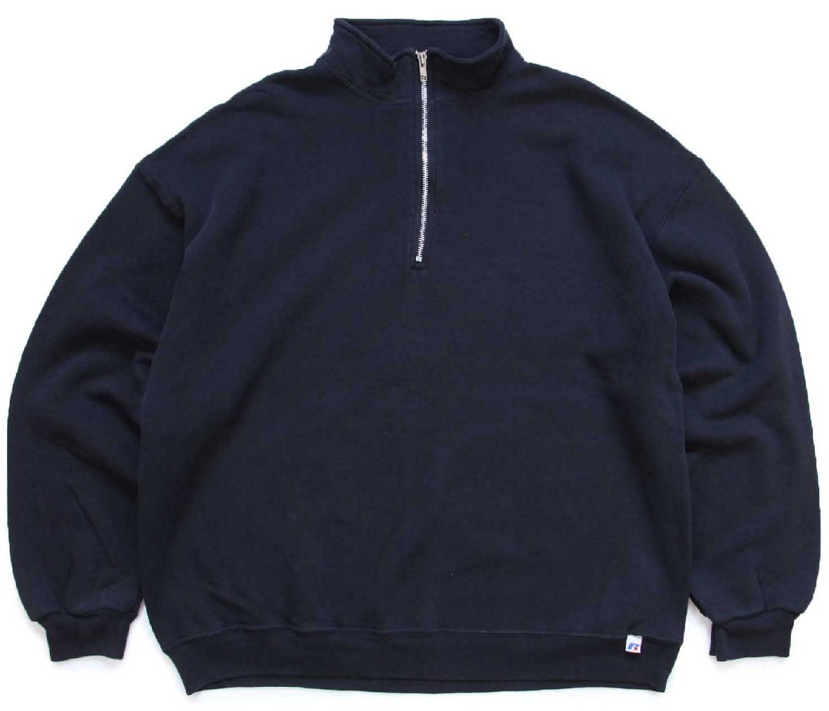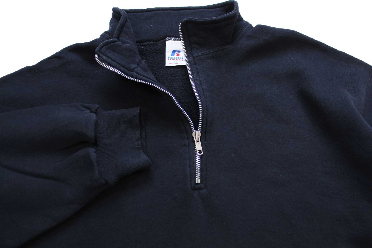 00s メキシコ製 RUSSELLラッセル 無地 ハイネック ハーフジップ スウェット 黒 XL★ブランク