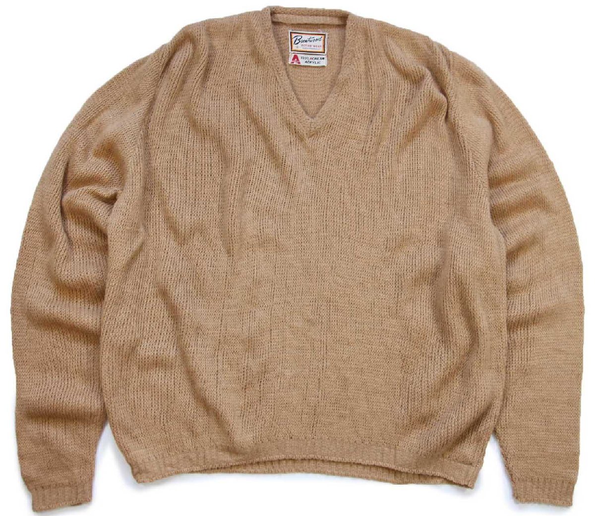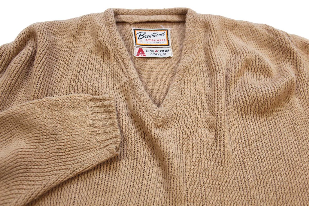 60s Brentwood 無地 Vネック アクリルニット セーター 薄茶 M