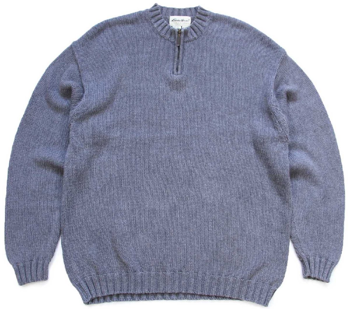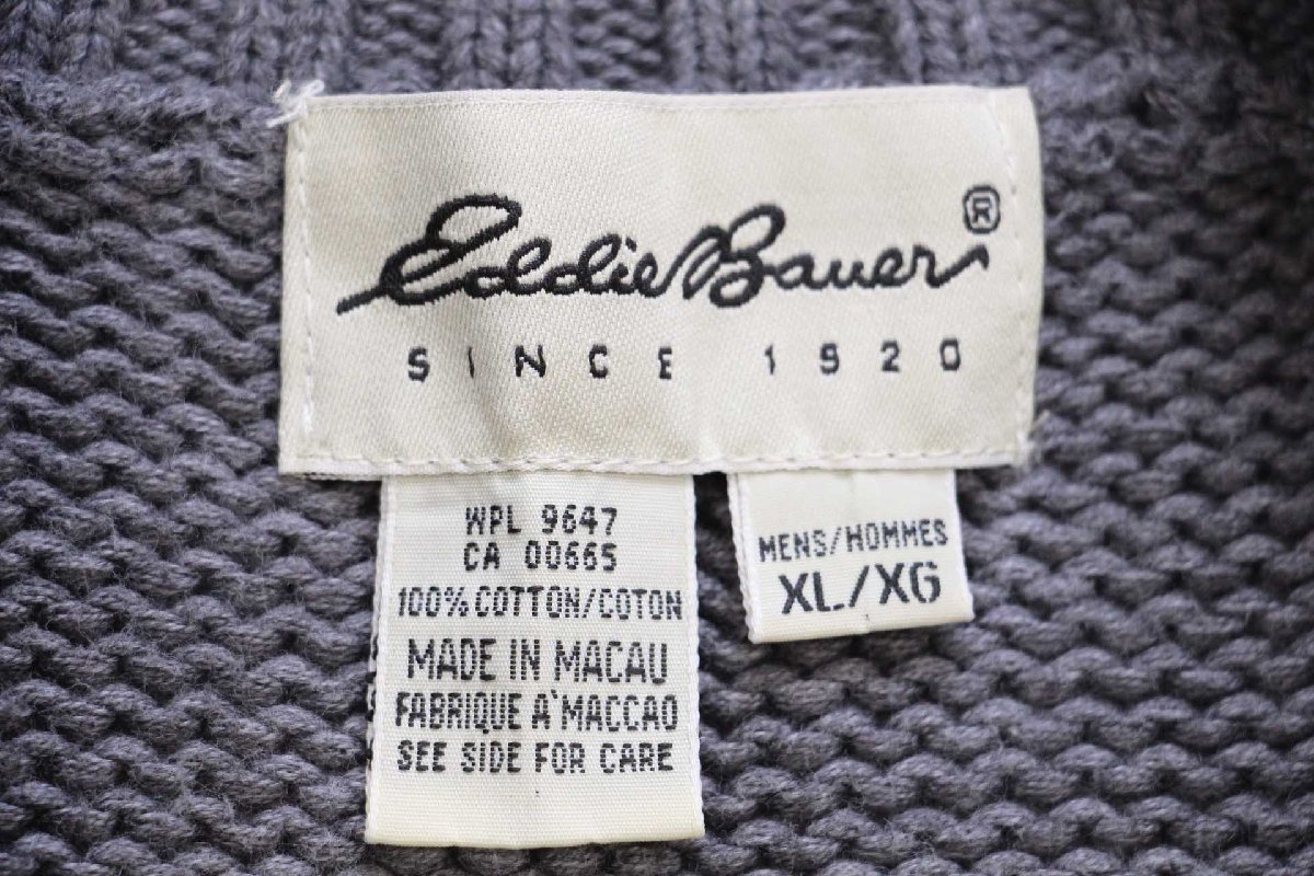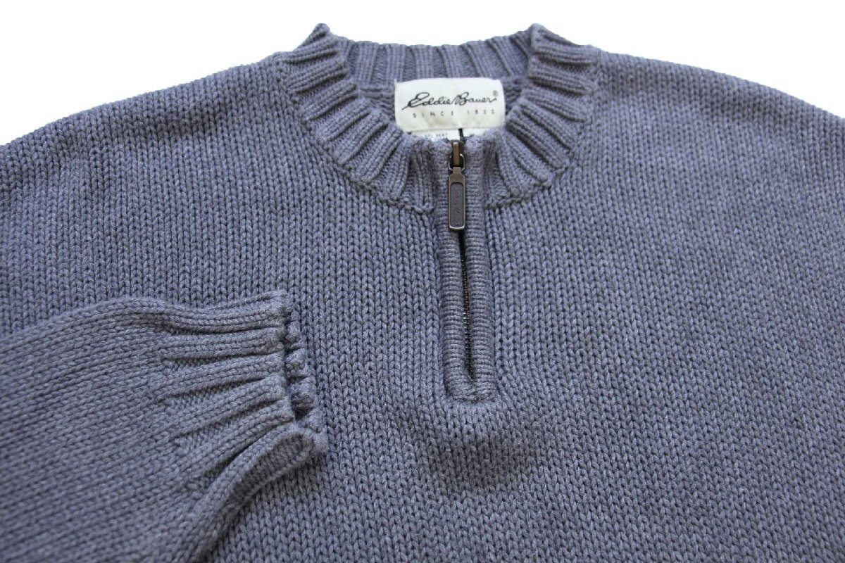 90s EddieBauerエディーバウアー 無地 ハーフジップ コットンニット セーター グレー XL