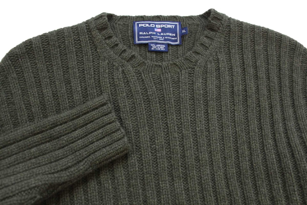 90s POLO SPORT ポロ スポーツ ラルフローレン ラムウールニット セーター オリーブグリーン XL