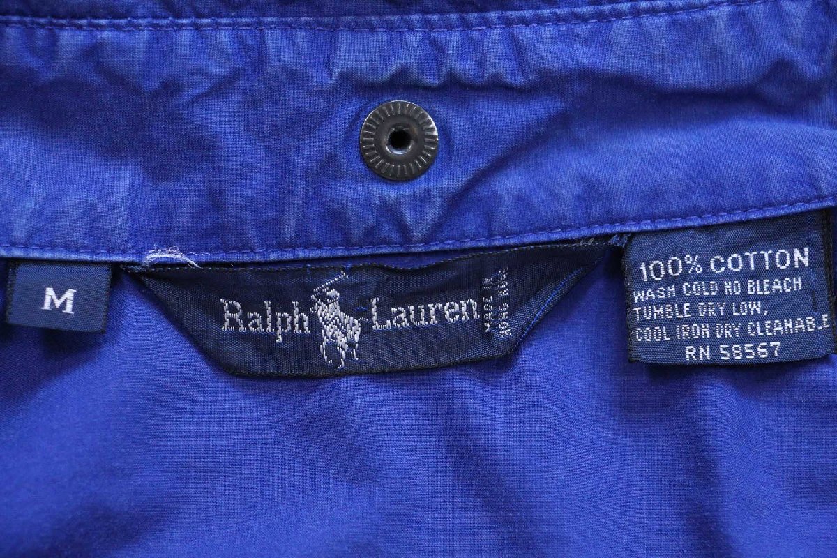 90s ラルフローレン ワンポイント チンスト&フード付き コットンポプリン ジャケット 青 ボーイズM