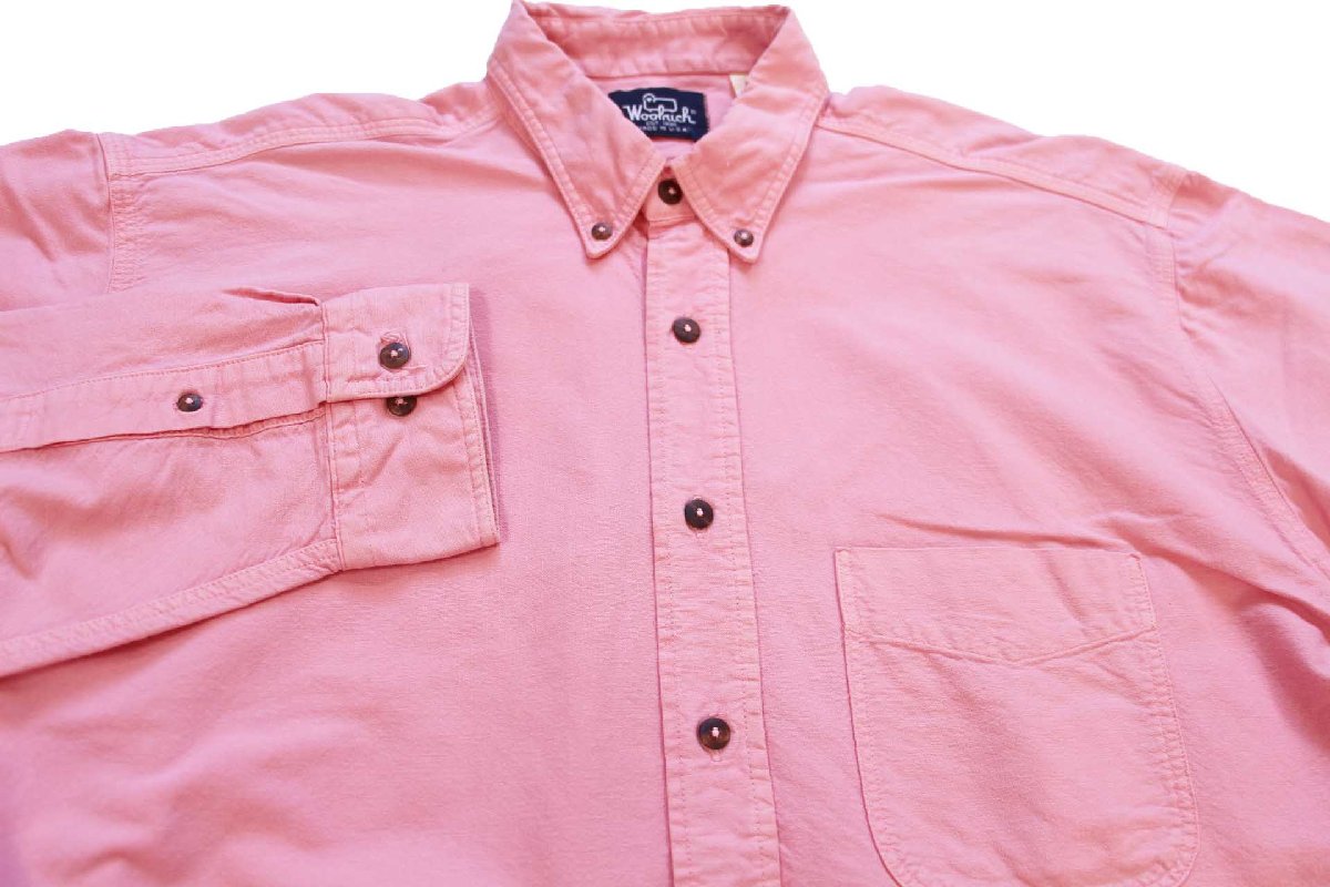 80s USA製 Woolrichウールリッチ 無地 ボタンダウン コットンシャツ ピンク L