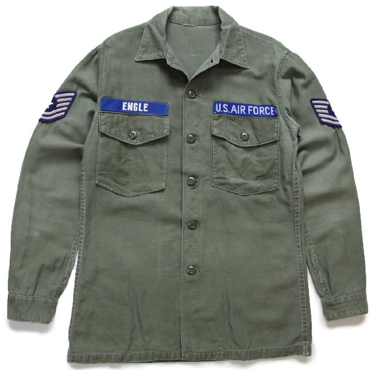 60s 米軍 U.S.AIR FORCE パッチ付き コットンサテン ユーティリティシャツ オリーブグリーン カスタム