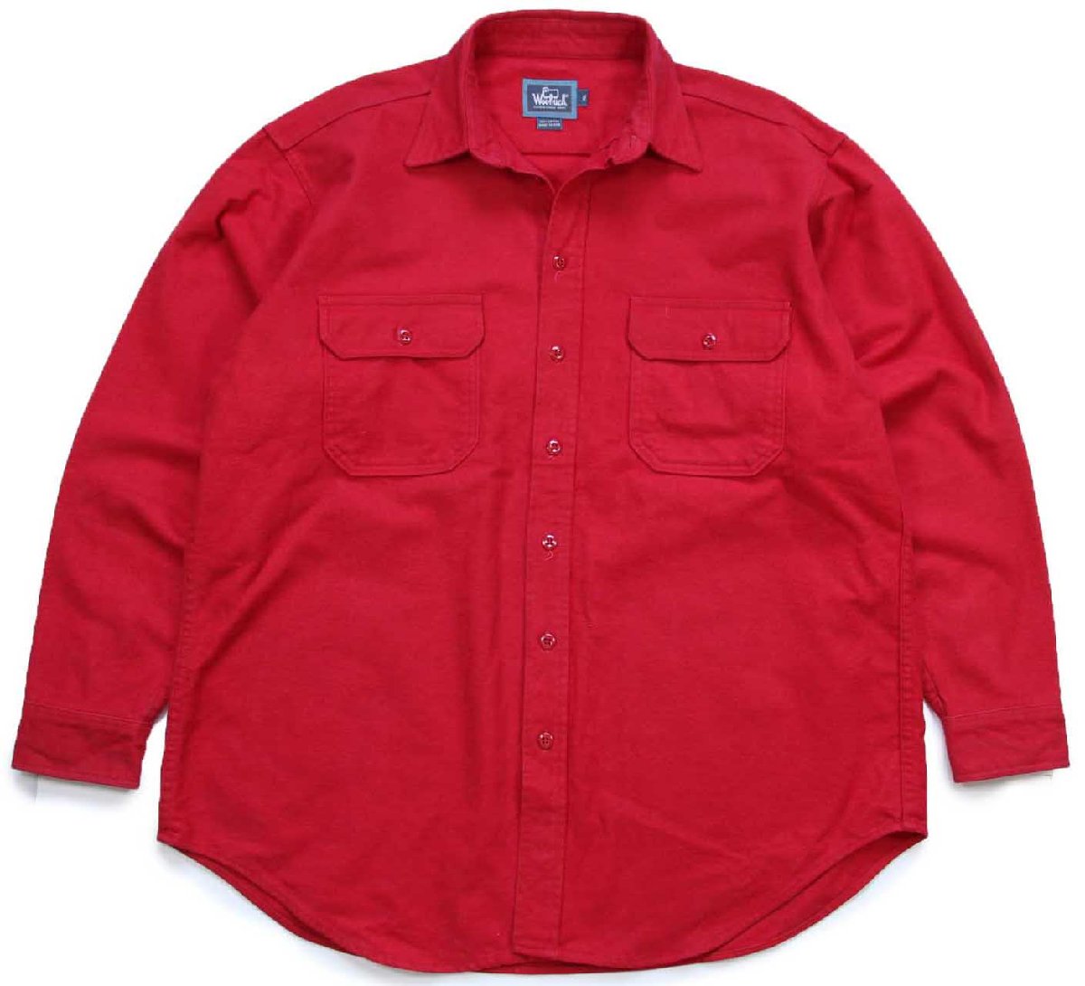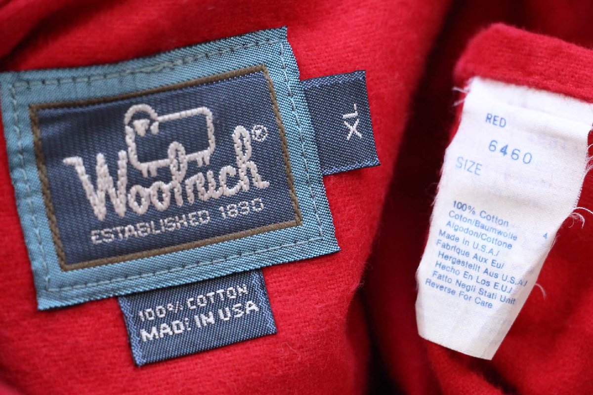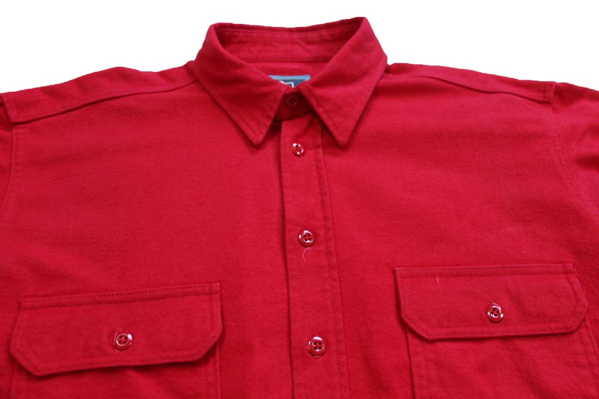 90s USA製 Woolrichウールリッチ 無地 コットン シャモアクロスシャツ 赤 XL