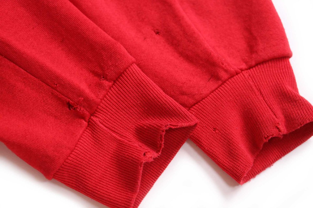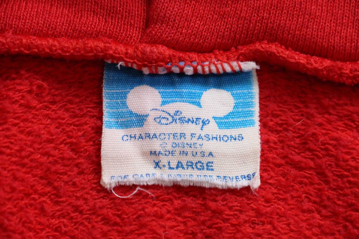 80s USA製 Walt Disney World ミッキー マウス ひび割れプリント ダメージ スウェット ジップパーカー 赤 XL★フーディー