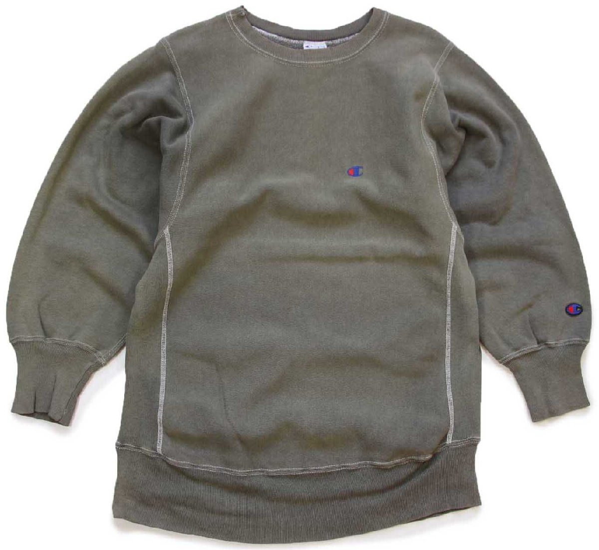 90s メキシコ製 Championチャンピオン ワンポイント リバースウィーブ スウェット 後染め グリーングレー フェード M