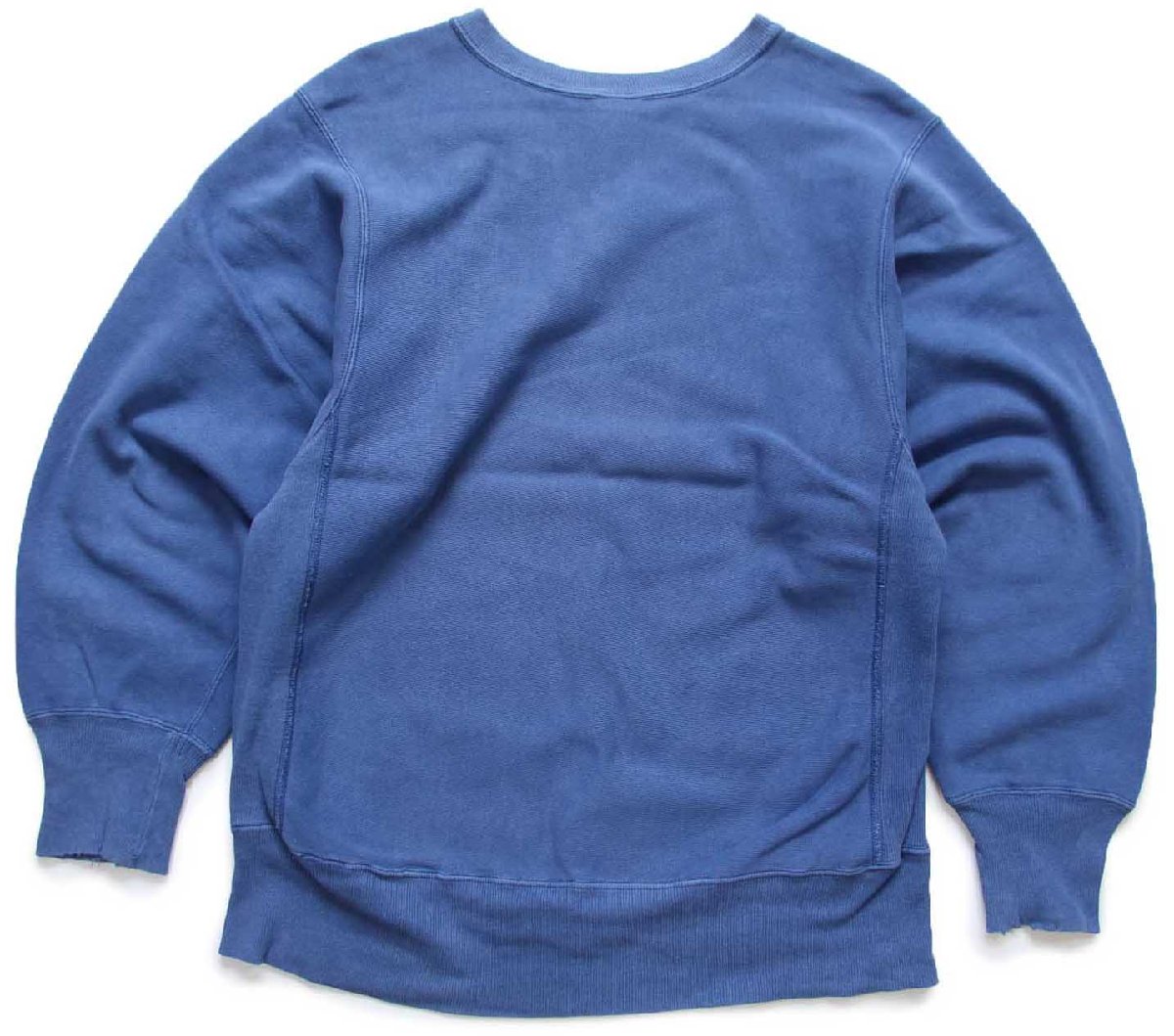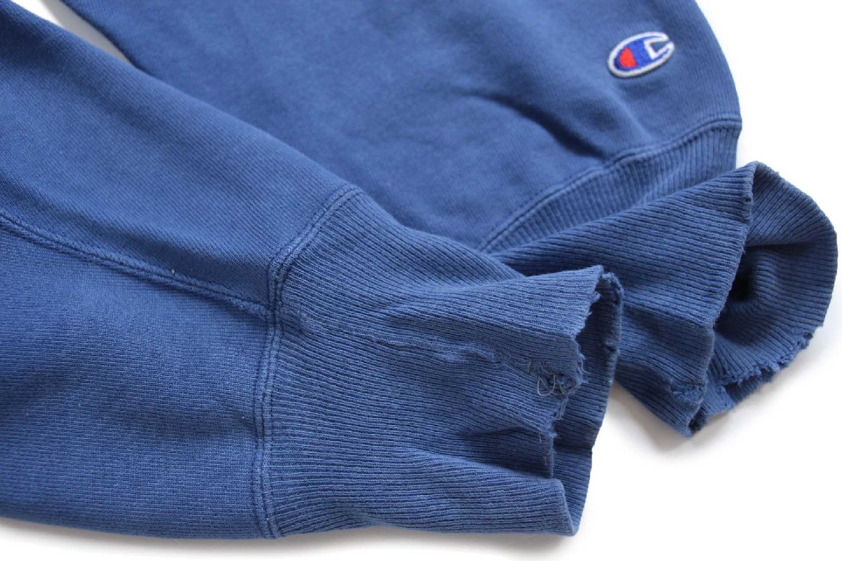 コンディション:着用感があり、全体的に多少の色落ち、胸の中央に細かい色抜け、ネック付け根に小キズ、ネックとフロント左サイド下部に少しの生地の開き、袖リブに生地の開きがあります。目立つダメージや酷い汚れはなく、味とご理解いただける方でしたら問題なく着用いただける程度です。