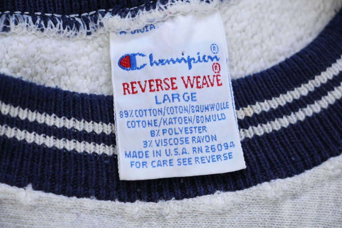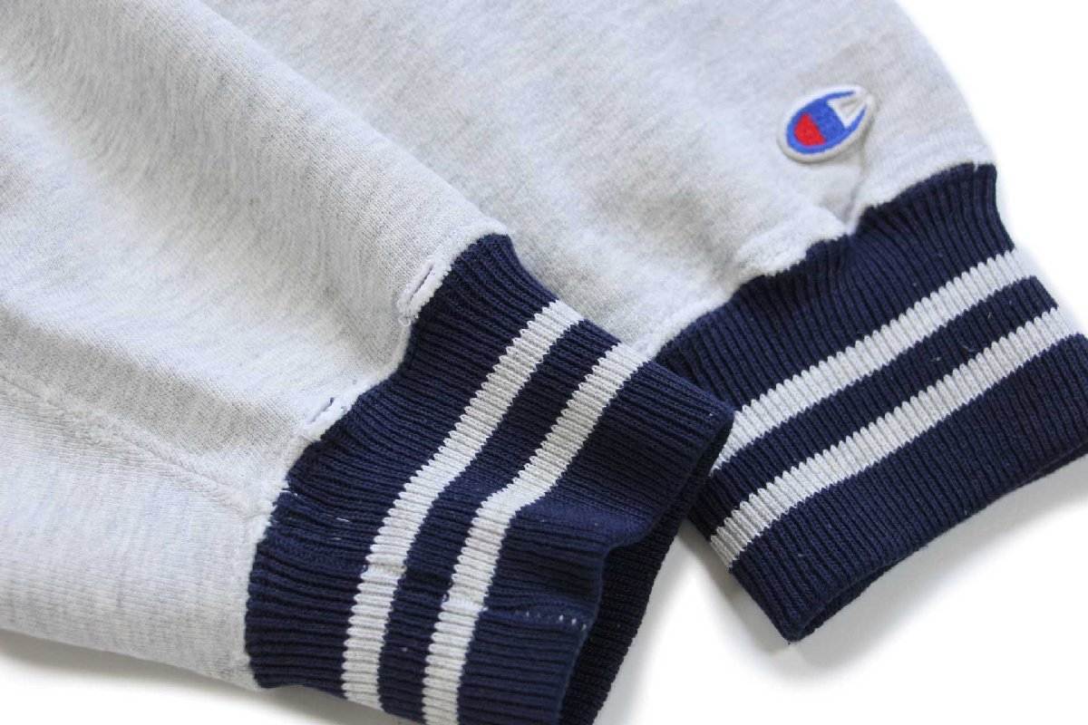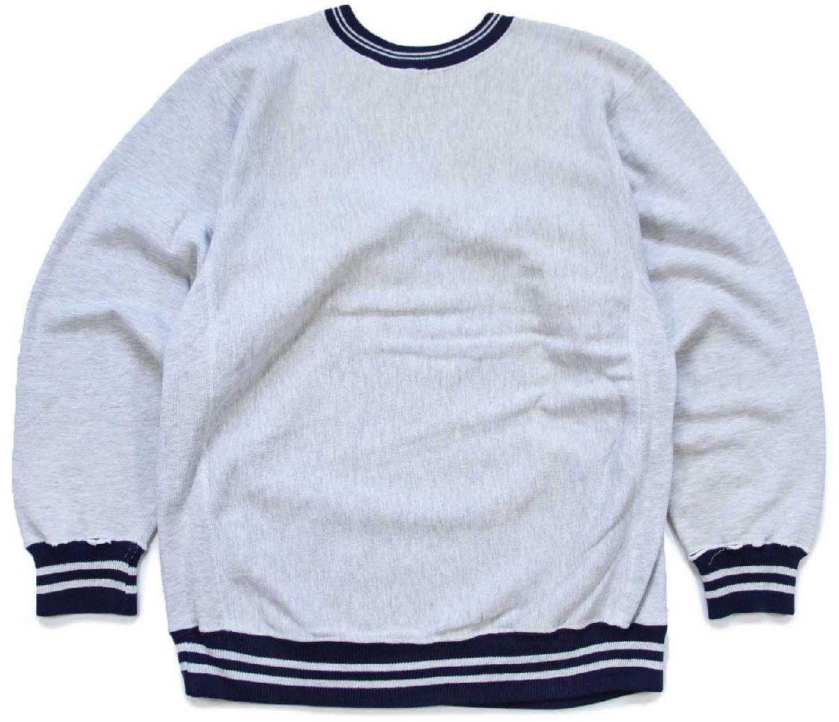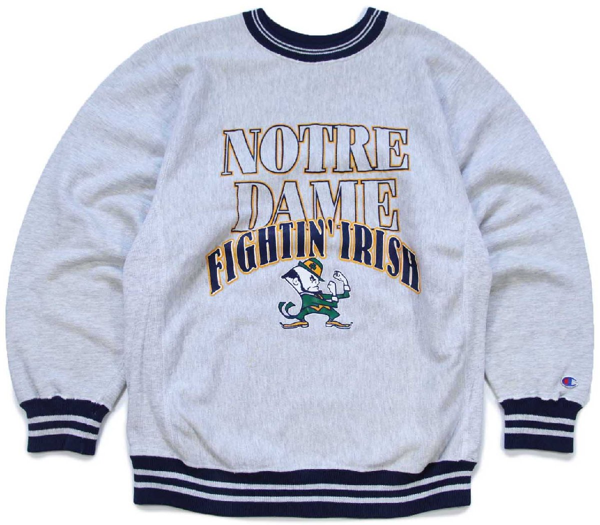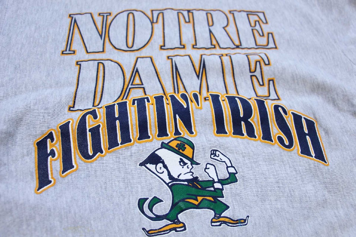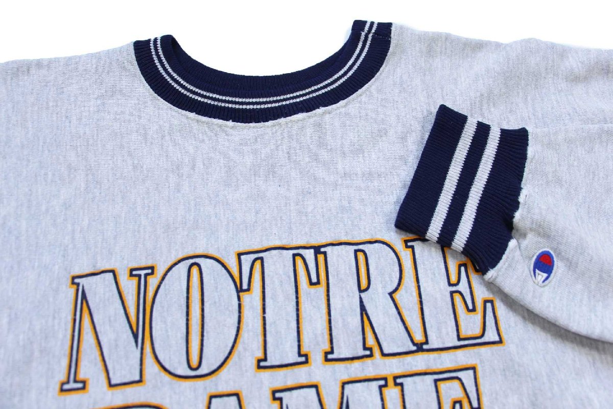 90s USA製 Championチャンピオン NOTRE DAME FIGHTIN' IRISH マスコット リブライン リバースウィーブ スウェット 杢グレー×紺 L