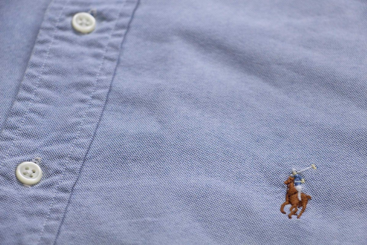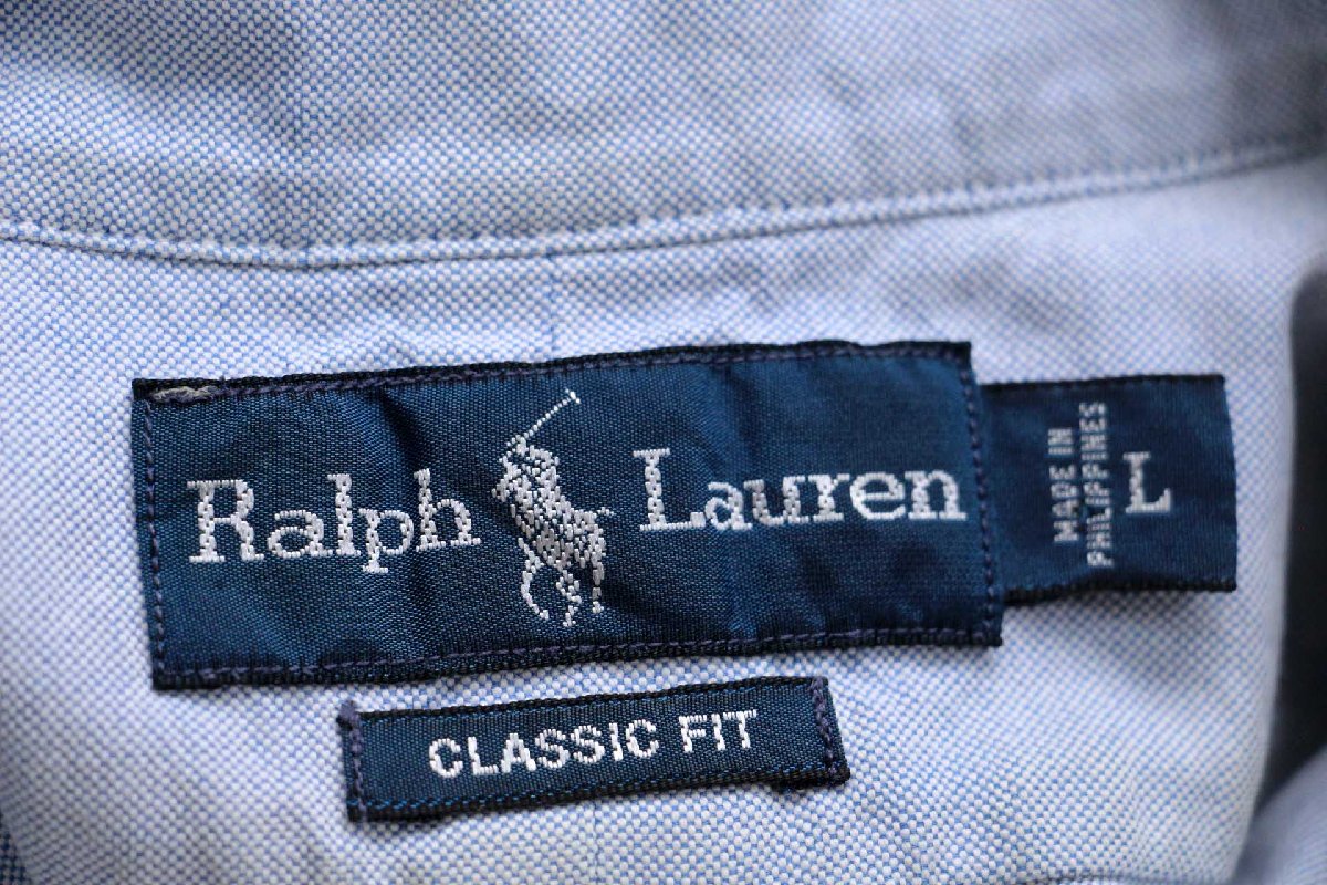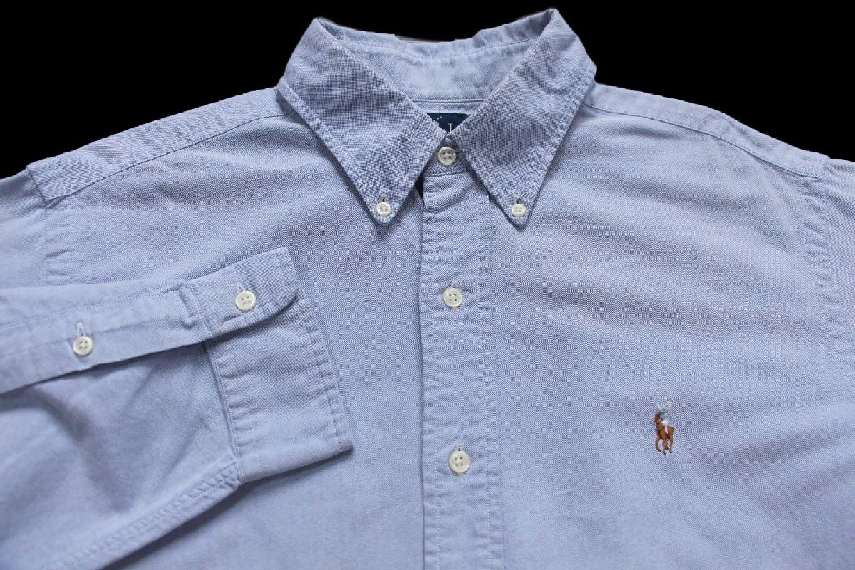 00s ラルフローレン CLASSIC FIT ワンポイント ボタンダウン オックスフォード コットンシャツ サックス L★12
