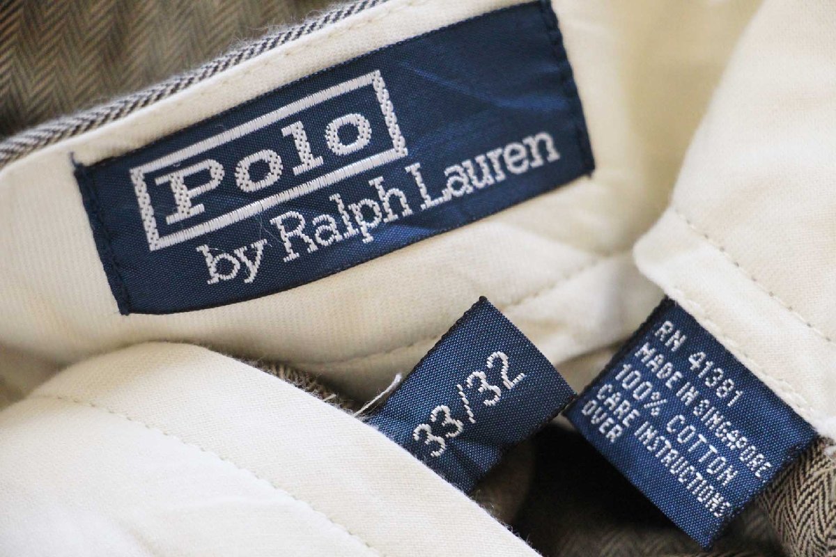 90s ポロ ラルフローレン ヘリンボーン ツータック スラックス コットンパンツ W33