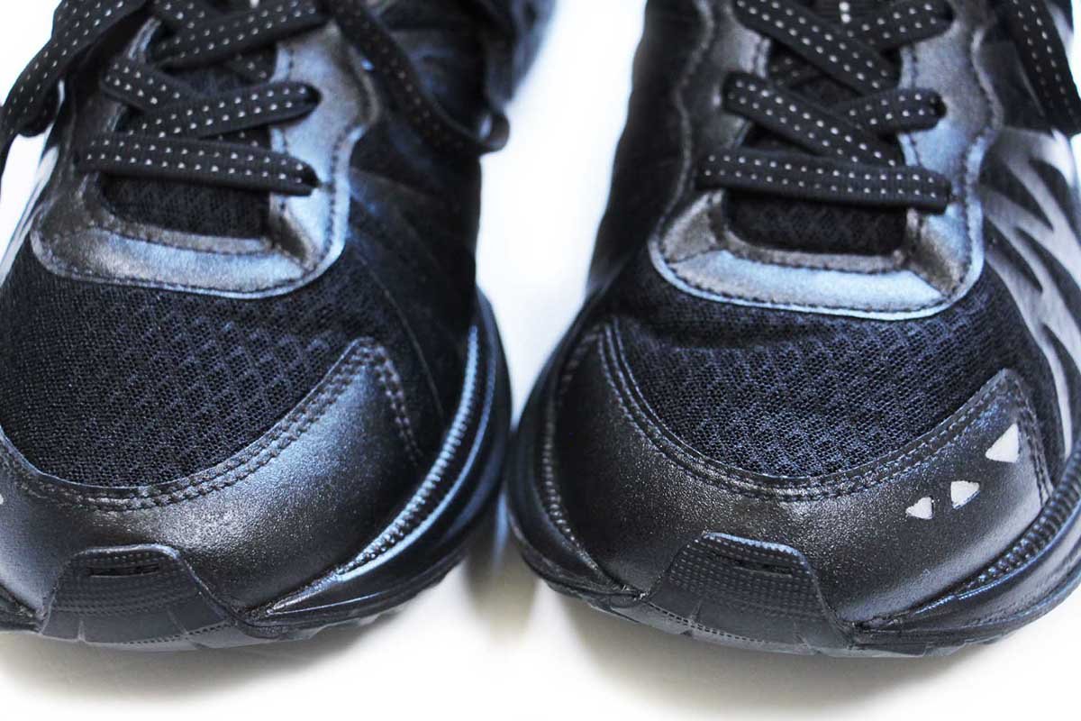 アッパーはメッシュ×TPU素材、つま先やかかとにリフレクターあり、Vibramソール