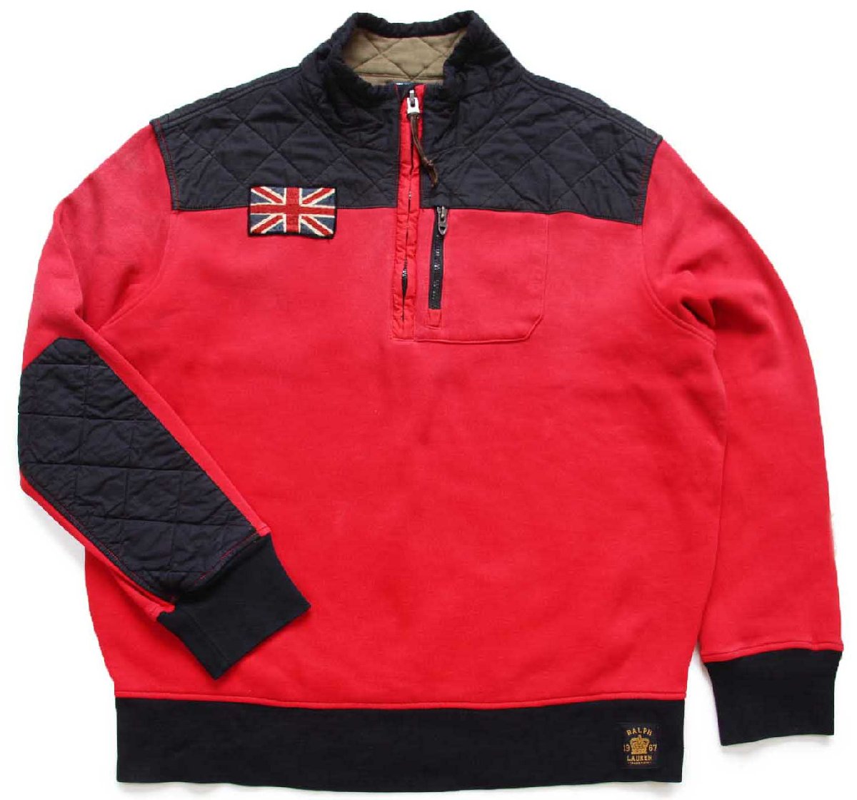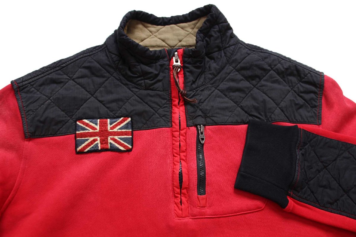 00s ポロ ラルフローレン ツートン キルティング 切り替え ユニオンジャック パッチ付き ハイネック ハーフジップ スウェット XXL★特大