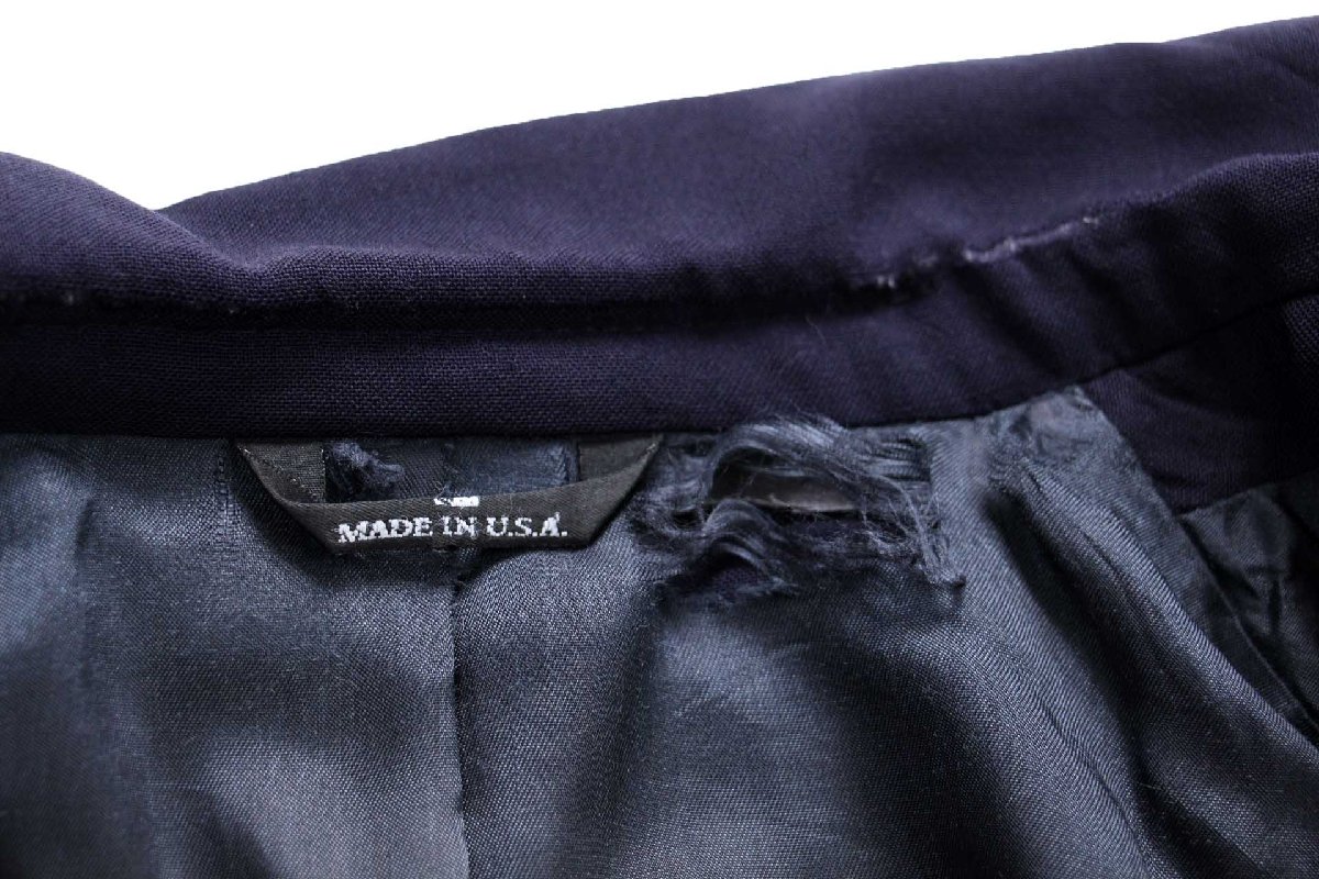コンディション:着用感があり、右袖先に少しの細かい薄汚れ、襟の折り目に多少の擦れ、裏地襟下と左内ポケット口に擦り切れがあります。致命的なダメージや酷い汚れはなく、古着慣れされている方なら問題なく着用いただける程度です。