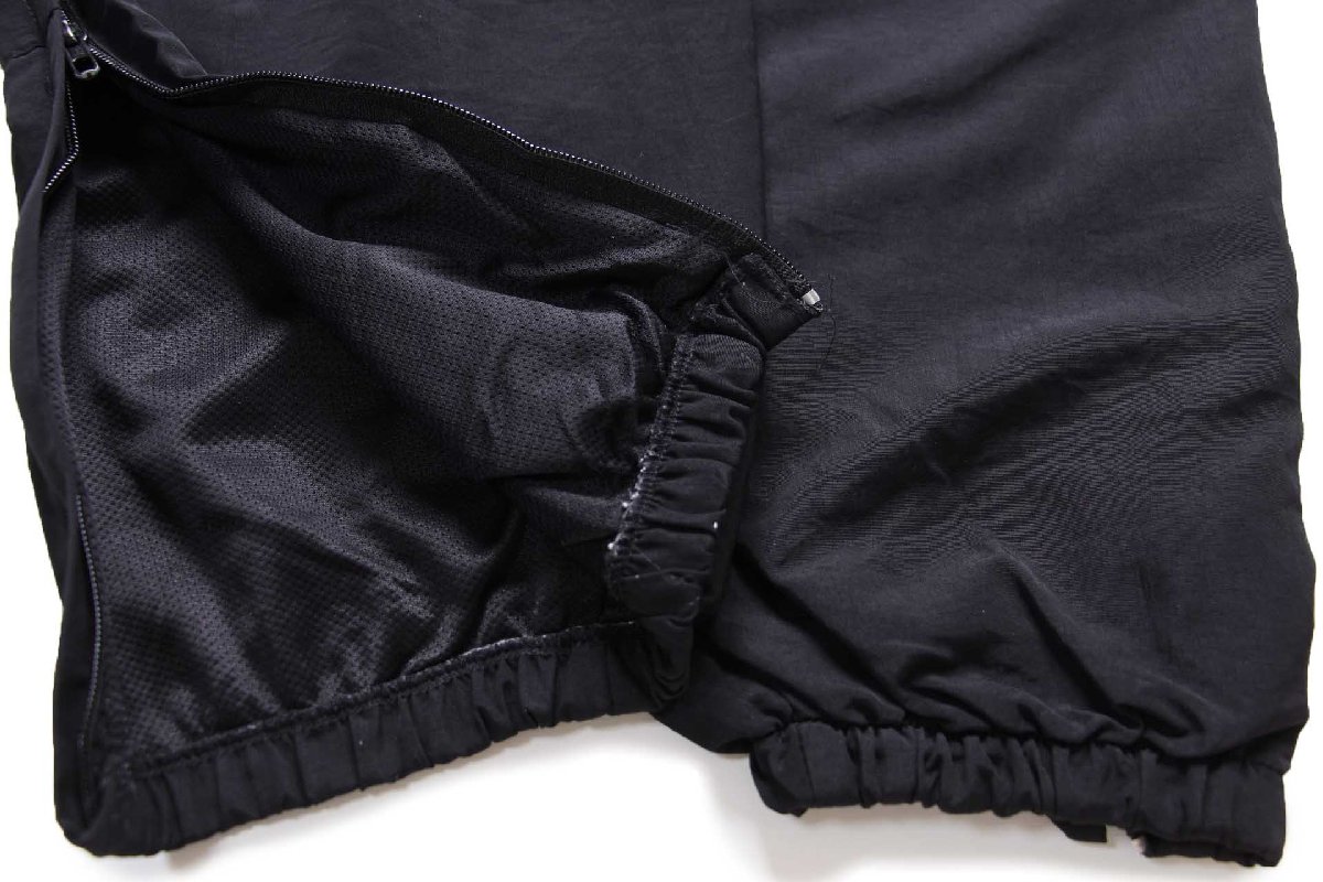 ウエストにドローコード(留め具欠損)あり、サイドポケットあり、裾にジップあり、右ポケット内にネームタグあり、裏地はメッシュ、ヒザとヒップは生地が二重になっています。