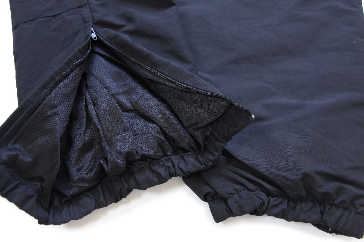 ウエストにゴム&ドローコードあり、サイドポケットあり、裾にジップあり、右ポケット内にネームタグあり、裏地はメッシュ、ヒザとヒップは生地が二重になっています。