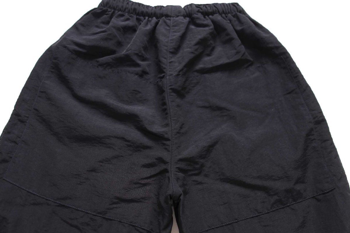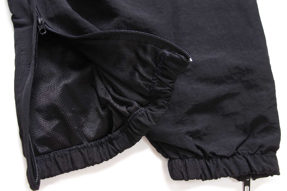 ウエストにゴム&ドローコードあり、サイドポケットあり、裾にジップあり、右ポケット内にネームタグあり、裏地はメッシュ、ヒザとヒップは生地が二重になっています。