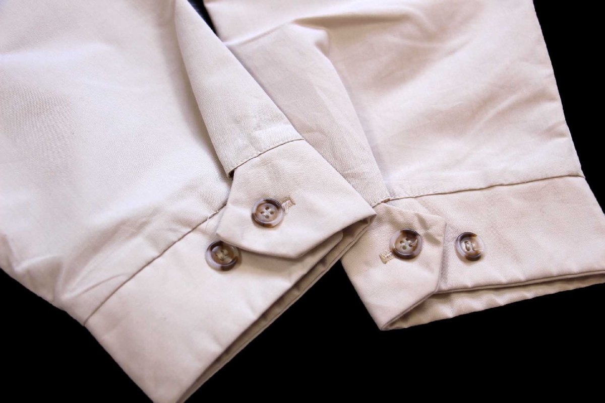 コンディション:多少の着用感があり、襟の折り目やフロント下部、袖口裏に若干の薄汚れ、背中下部中央に1つのピンホールがあります。目立つダメージや酷い汚れはなく、生地もしっかりしていて問題なく着用いただける程度です。