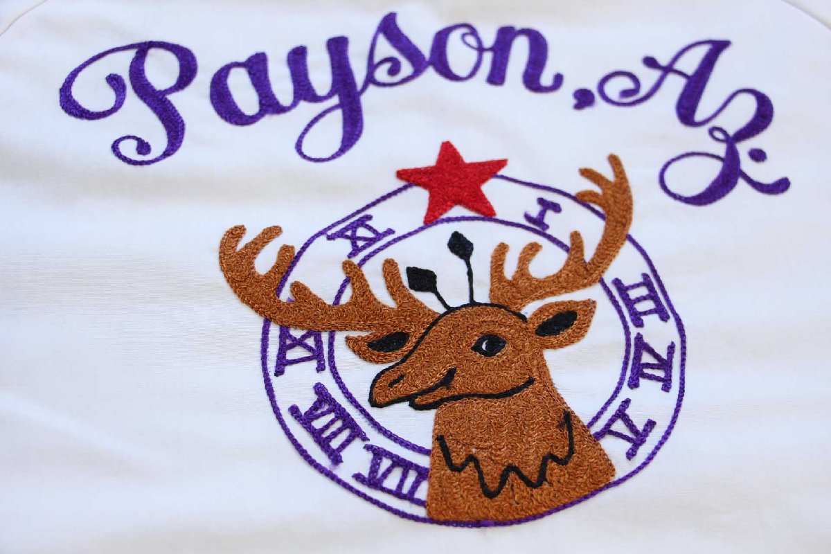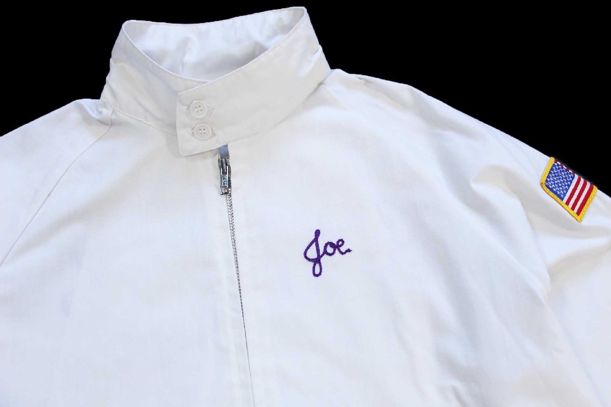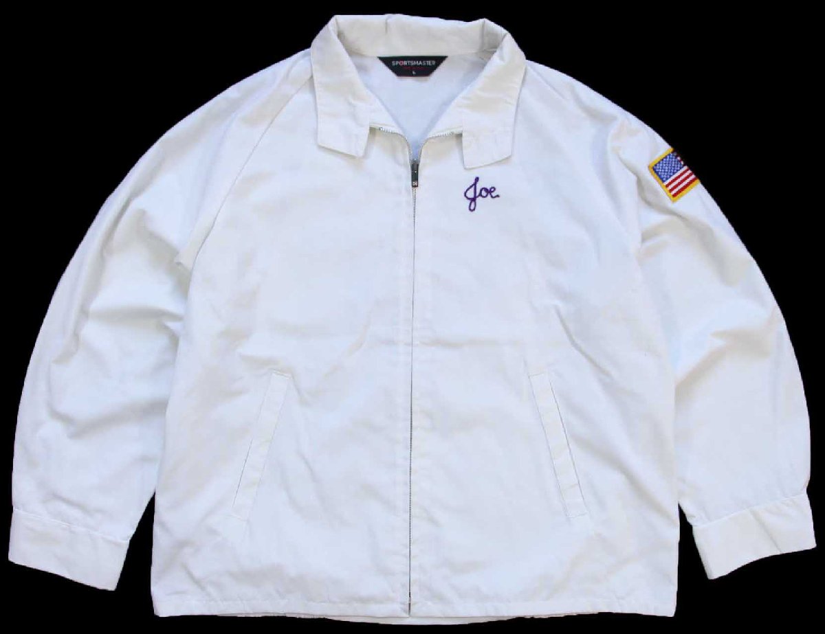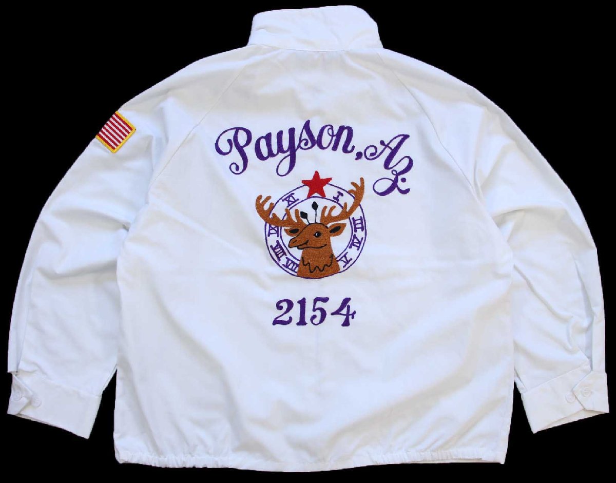 80s USA製 SPORTSMASTER Payson,Az エルクス チェーン刺繍 星条旗パッチ付き ジャケット 白 L