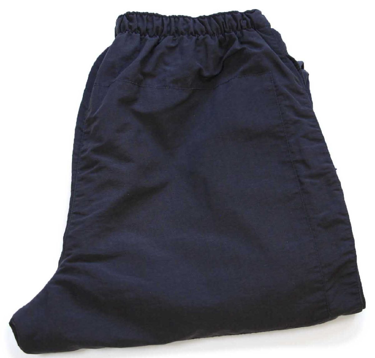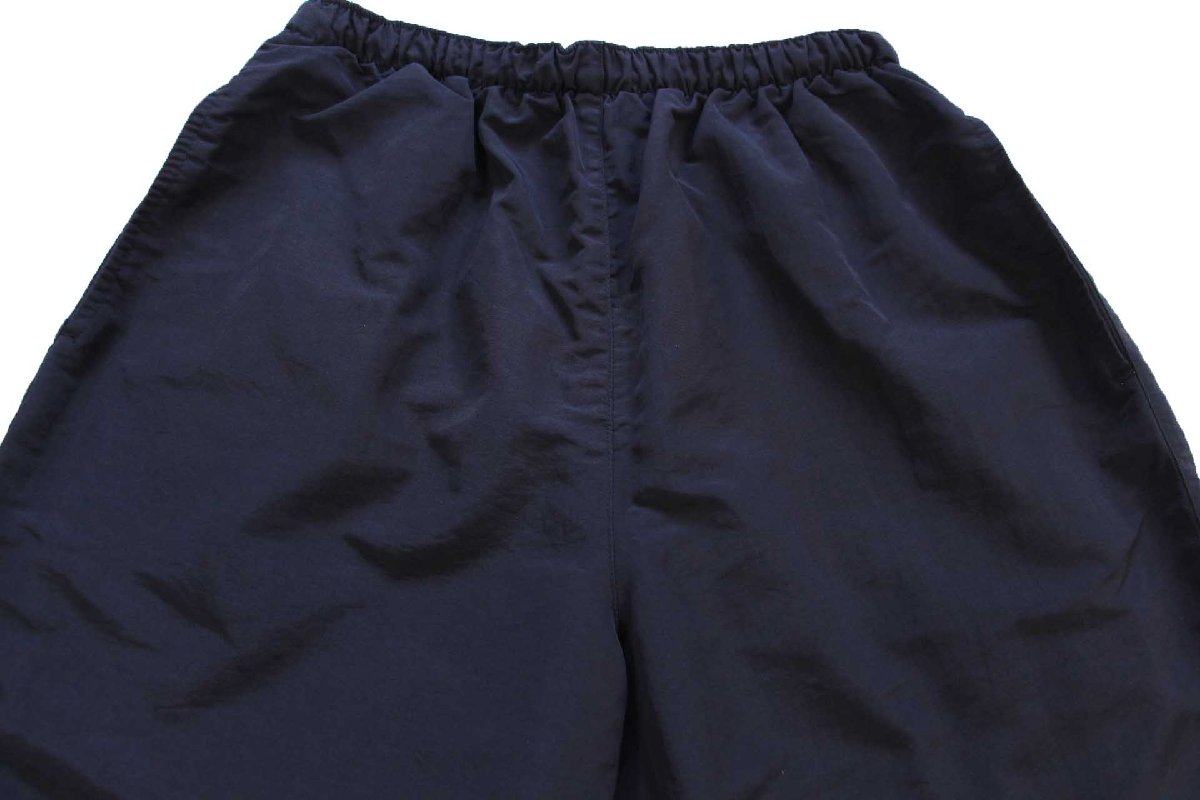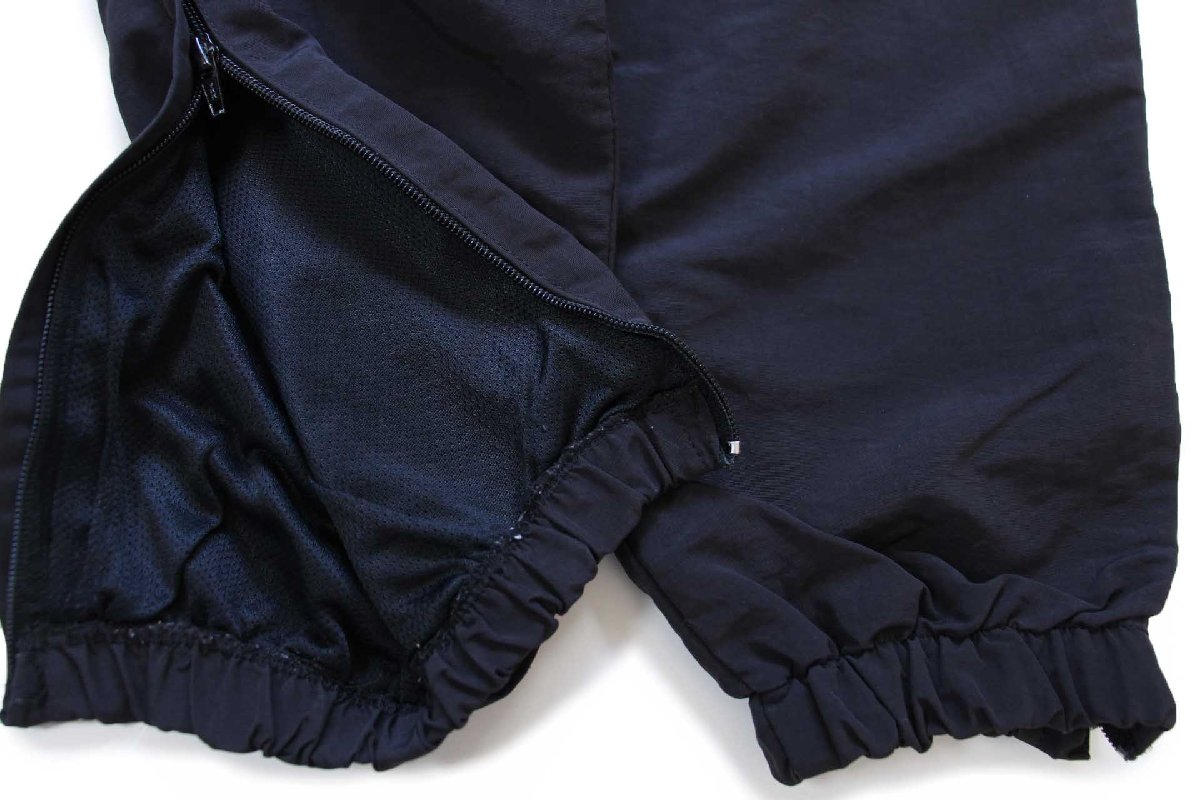 ウエストにゴム&ドローコードあり、サイドポケットあり、右ポケット内にネームタグあり、裾にジップあり、裏地はメッシュ、ヒザとヒップは生地が二重になっています。