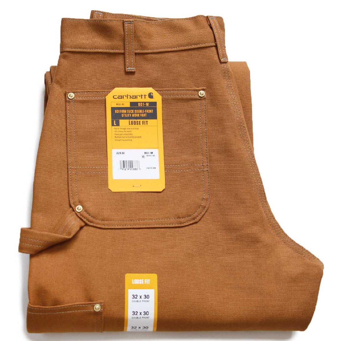 新品★USA製 carharttカーハート ダブルニー ダック地 ペインターパンツ 茶 W32 L30