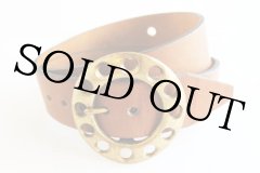 70's USA製 馬バックル カービング レザーベルト 茶★246